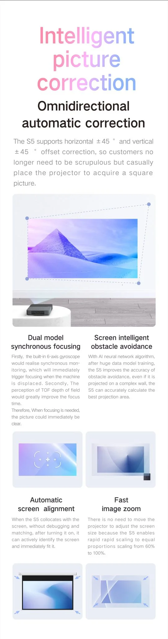 ez a funkció nem csinál mást, minthogy összehúzza a képet, ha valami – pl. egy villanykapcsoló – beletakarna. Ez nem egy okosprojektor, ami ebben az esetben jót jelent, mert a gyenge hardver és a régebbi Android nem fogja büntetni a felhasználókat, vagyis ez szinte mindig jó jelnek tekinthető.