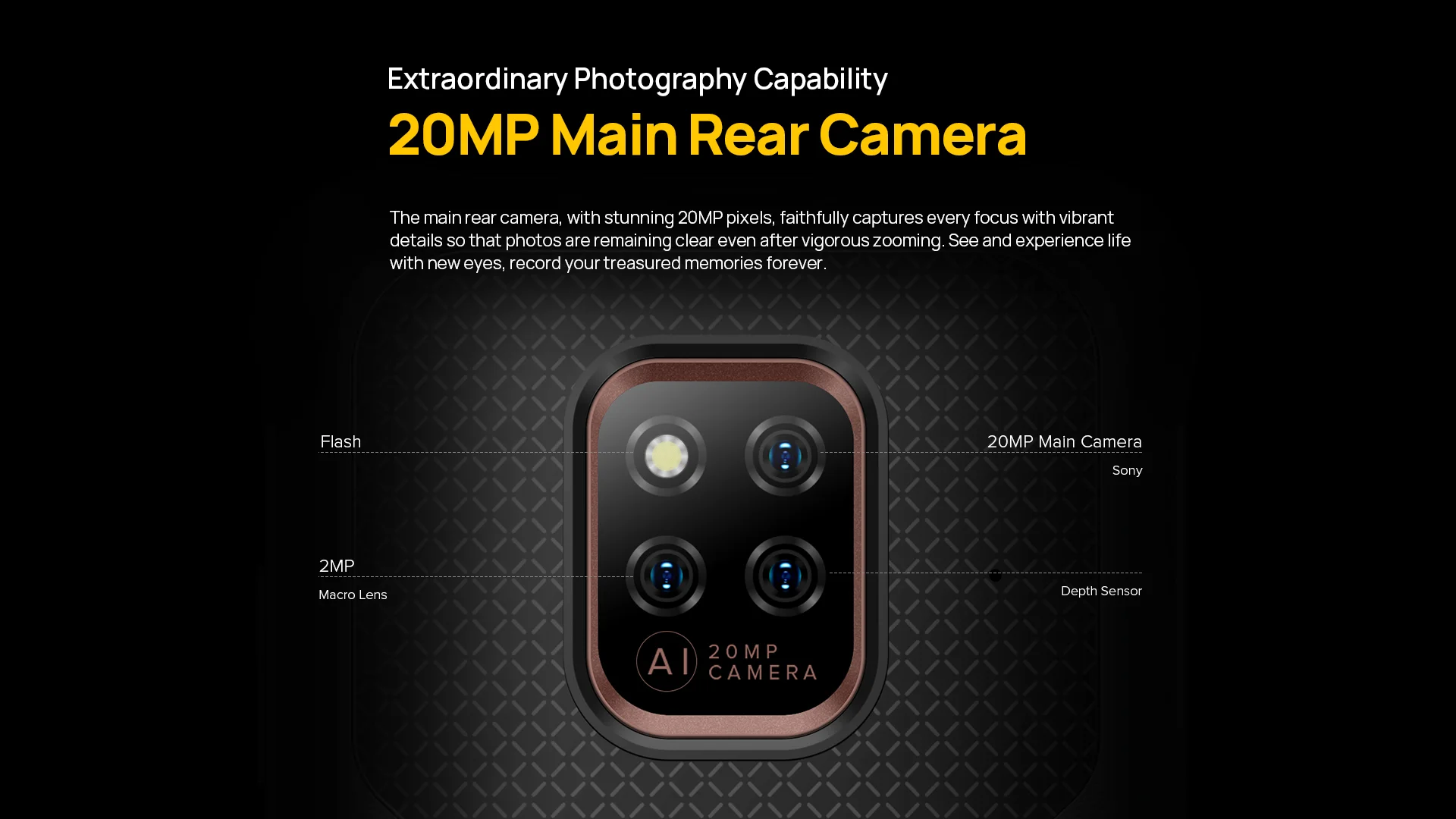 A 20 MP-es hátlapi főkamerát egy mélységérzékelő szenzor és 2 MP-es makró lencsés egység egészíti ki, ezekkel pedig már jó fényviszonyok között valószínűleg használható fotókat is lehet lőni, ellenben maximum 1080p 30 FPS videók felvételére alkalmas, amitől már olyan sokat nem várunk. Az előlapra egy 16 megapixeles kamera került, ami a hátlapihoz hasonlóan szintén egy Sony szenzort kapott, de nem tennénk rá a fejünket, hogy bárki is ezzel a telefonnal fogja lőni élete szelfijeit.