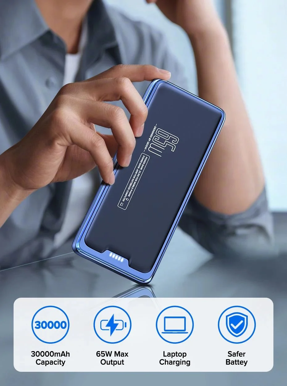 QOOVI 30 000 mAh-s power bank 65 W teljesítménnyel