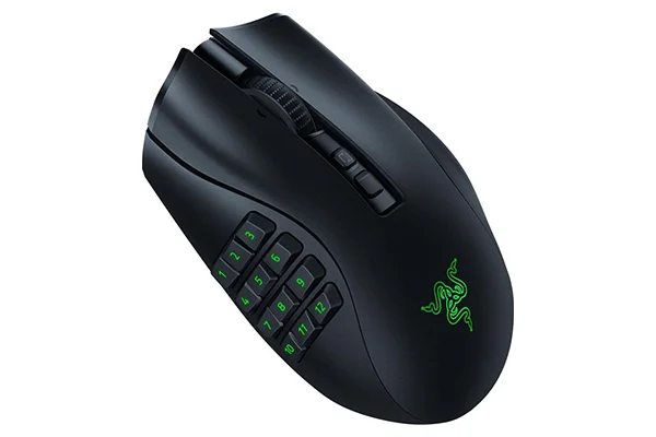 Ha a Death Adder V3 Prót nem FPS játékokra, hanem MMORPG-re találták volna ki, akkor meg is kapnátok a Naga V2 Prót. Nincs az a mana- vagy életerőital mennyiség, amit ne lehetne ide felprogramozni, miközben ugyanolyan csúcshardver dolgozik benne, mint a többi full extrás Razer egérben. Az üzemideje hihetetlenül hosszú, akár egy hónapot is kibír valós felhasználás mellett.