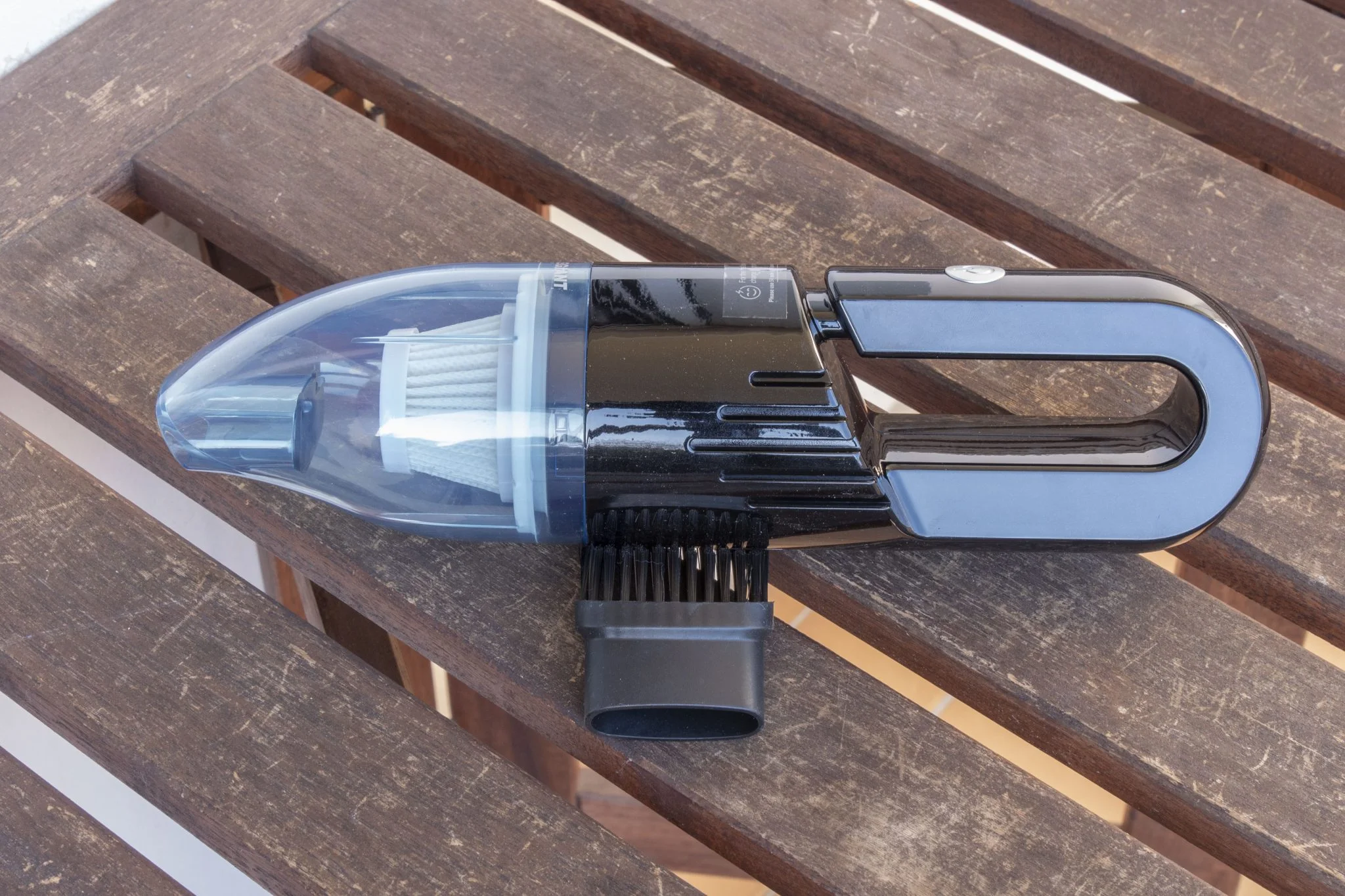 Két felfedezést is tettem, az egyik, hogy a szűkítő cső szája kicsi, így a takarító eszköz elég kis mennyiséget tud felszívni egyszerre, nyilván ez a kiszórt morzsákhoz teljes mértékben elegendő, de nagy felületeket nem túl könnyű vele takarítani. A másik, hogy a szőnyegre az 5000 Pa szívóteljesítmény kevés, így a munkát a Roidmi F8 állóporszívómmal oldottam meg. Érdemes tudni, hogy a Mijia Vacuumnak ugyanez az értéke 13 000, míg a Coclean FV2 esetében 16 800 pascal. Vagyis az Elegiant EGH-VC2 jóval gyengébb, így nem vártam sokat az autóm tisztításától, de azért tettem egy próbát. A lábtérben lévő gumi taposókat még szépen letakarítja, de a kárpitba ragadt sárcsimbókokkal nem sok mindent tud kezdeni, viszont a kiegészítőket variálva a nehezen elérhető helyekre is be lehet vele nyúlni. Nem mintha igazán számítana, de még a kesztyűtartóba is betehetitek a VC2-t, amennyiben kipakoljátok az ott lakó dolgokat.