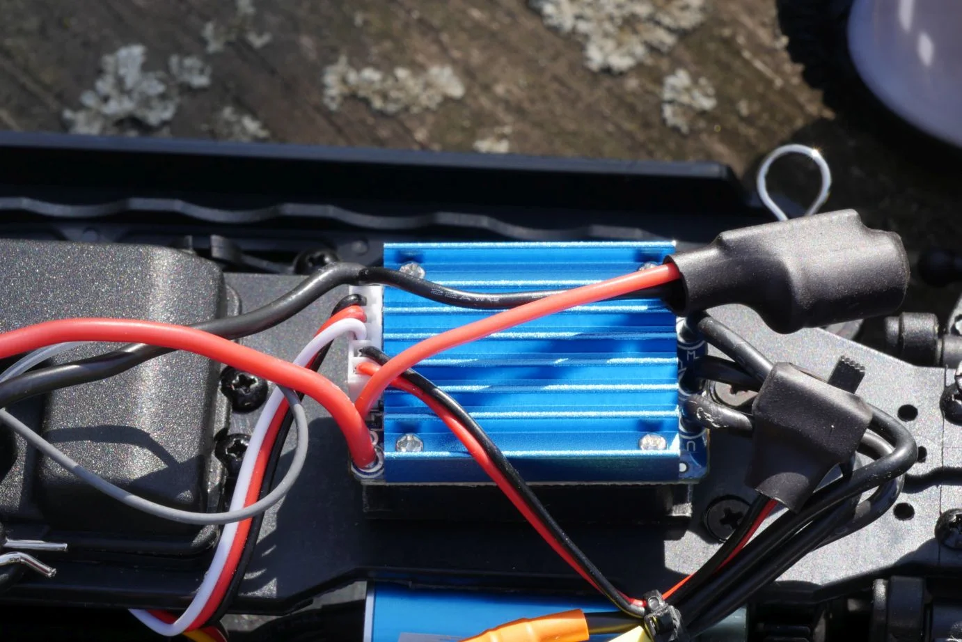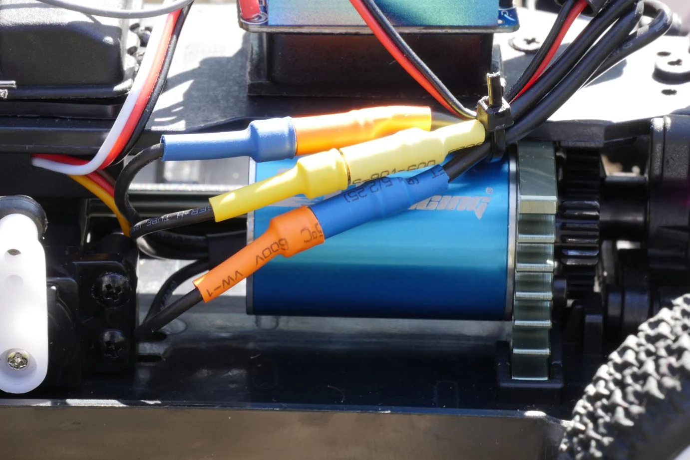 Egy-két apróbb spórolásra utaló jelet azért itt-ott felfedeztem. A 35 A-s fordulatszám-vezérlőt kétoldalú ragasztóval rögzítették, ez egy béna megoldás, gyorsan le is jön, szóval a felfogatást meg kell oldanotok. A másik az alkatrész ellátottság, ami nem tökéletes, de a fontosabb cuccok – differenciálmű, első-hátsó rugós tag, gumi – azért kaphatóak.