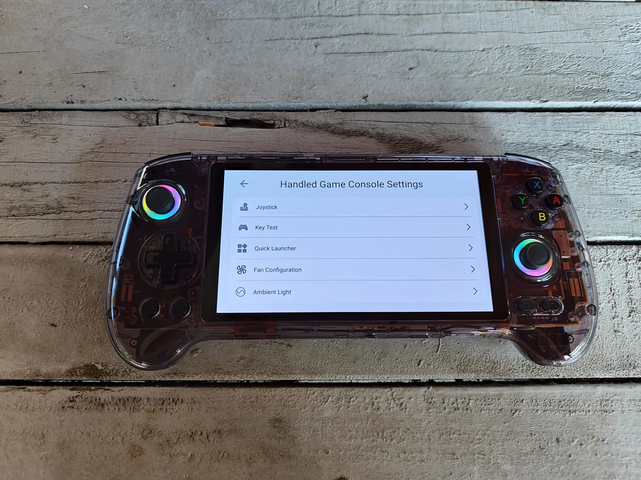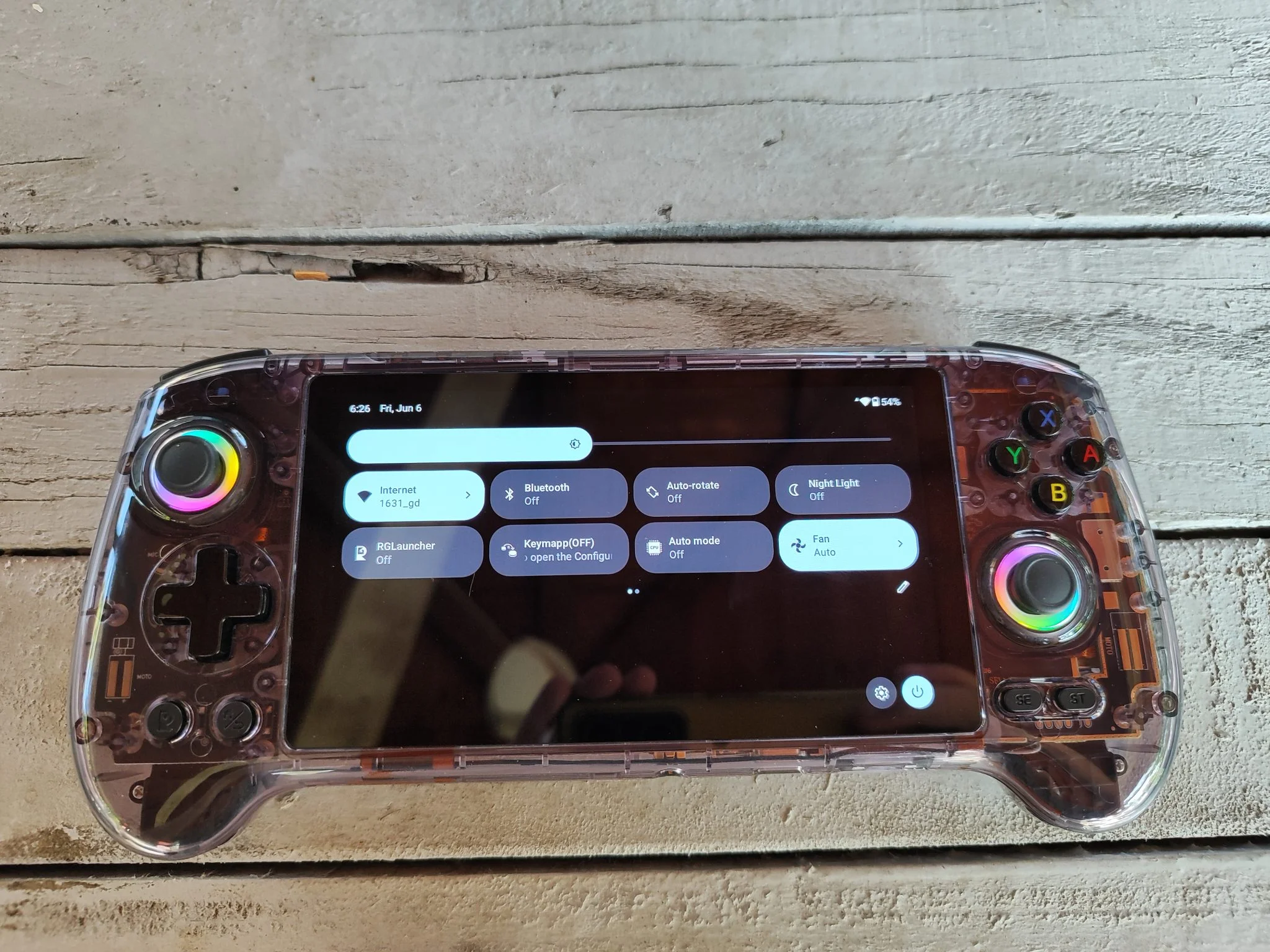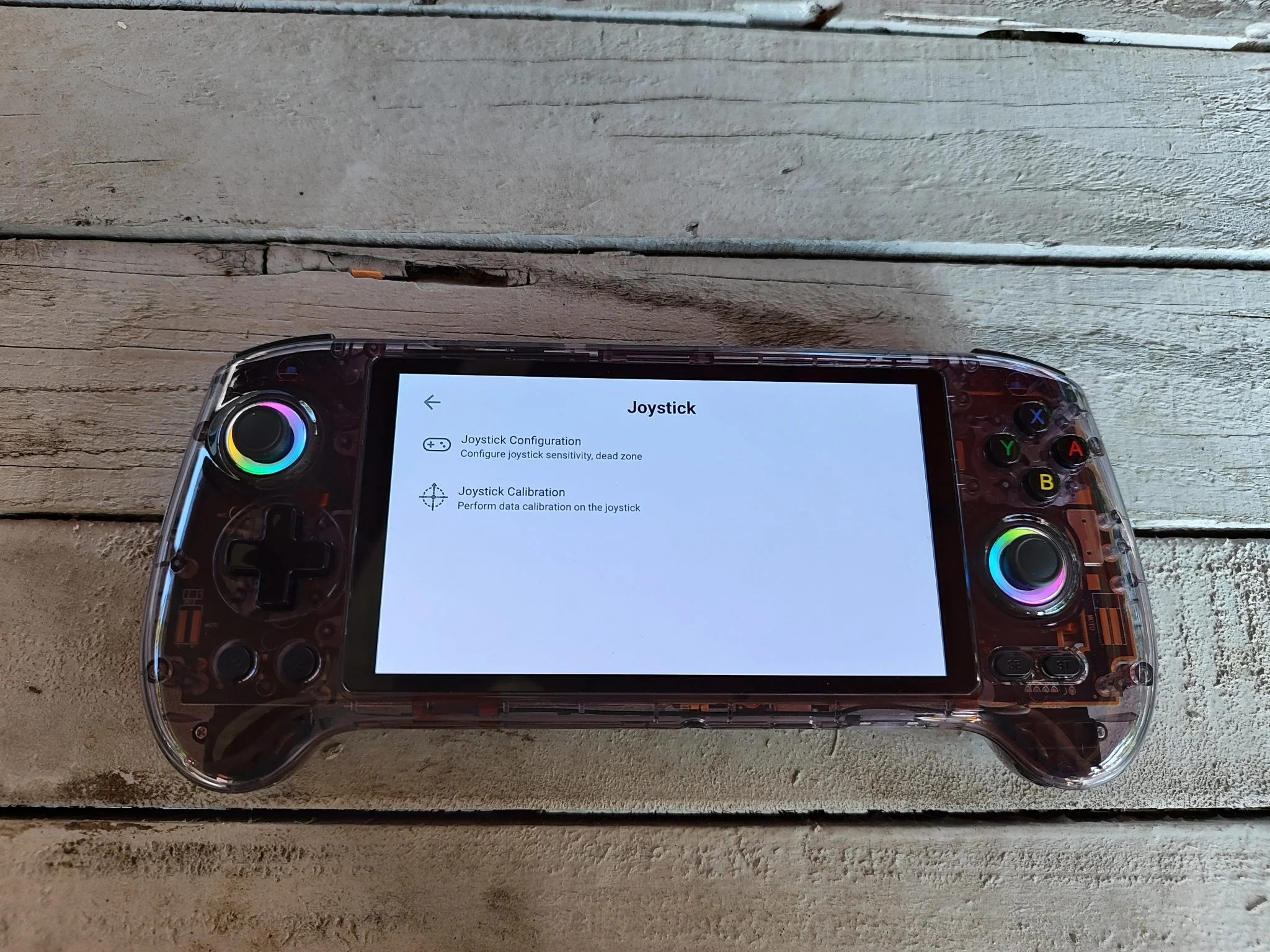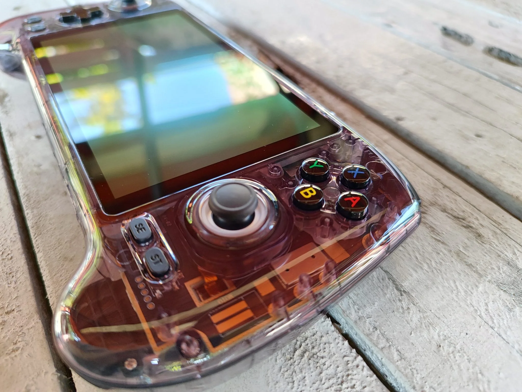 Az 5,48 colos AMOLED kijelző valódi ékkő: 1920×1080 pixeles felbontásával, mély feketéivel és élénk színeivel bármilyen retró vagy Android játék pompásan fest rajta. Az OCA laminálás miatt a betekintési szögek is kiválóak, minimális tükröződéssel. A színek kalibrálása gyári állapotban is kiváló, de lehetőség van finomhangolásra. Egyedül a PWM-villogás zavarhatja az érzékeny szemű felhasználókat, főleg alacsony fényerőn – ez viszont minden AMOLED panelre jellemző, nem ANBERNIC-specifikus hiba.