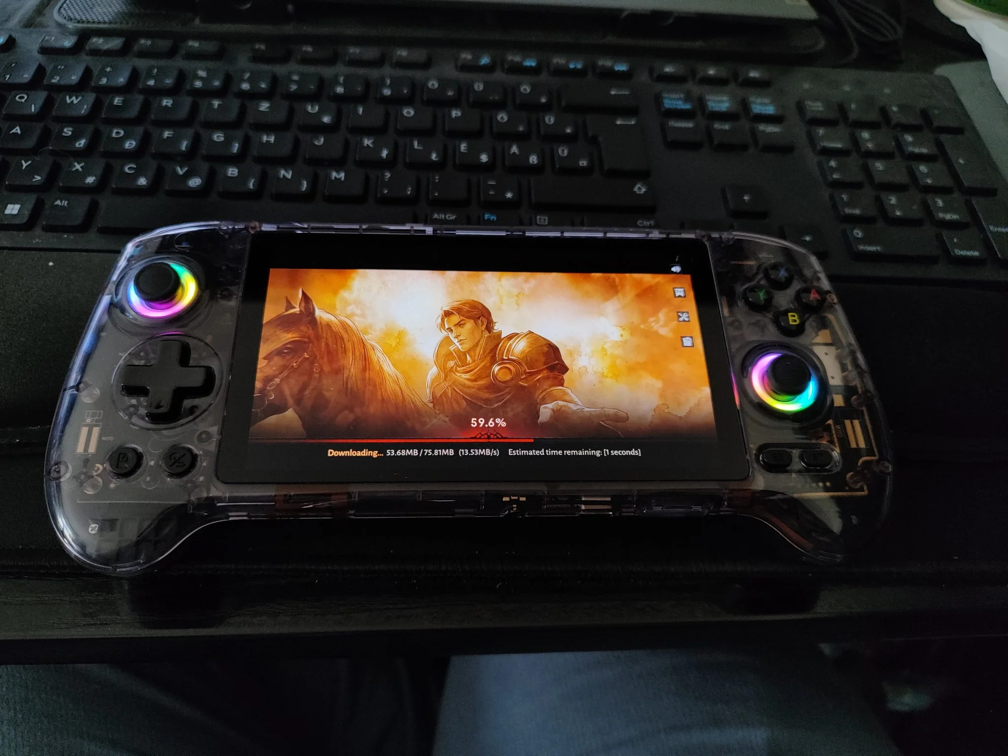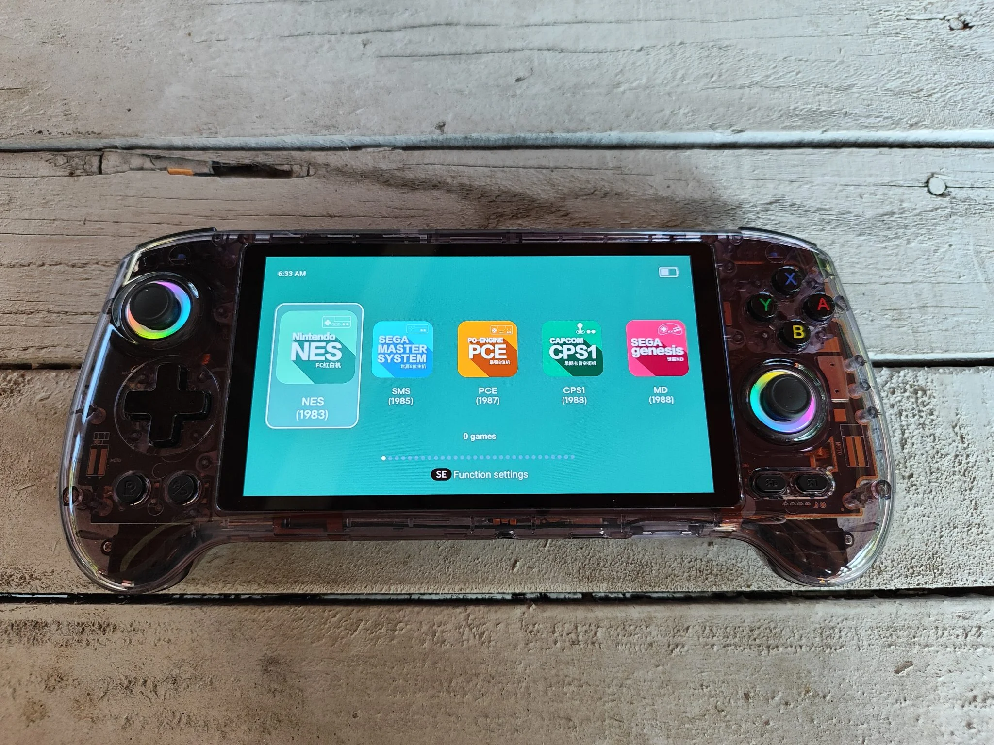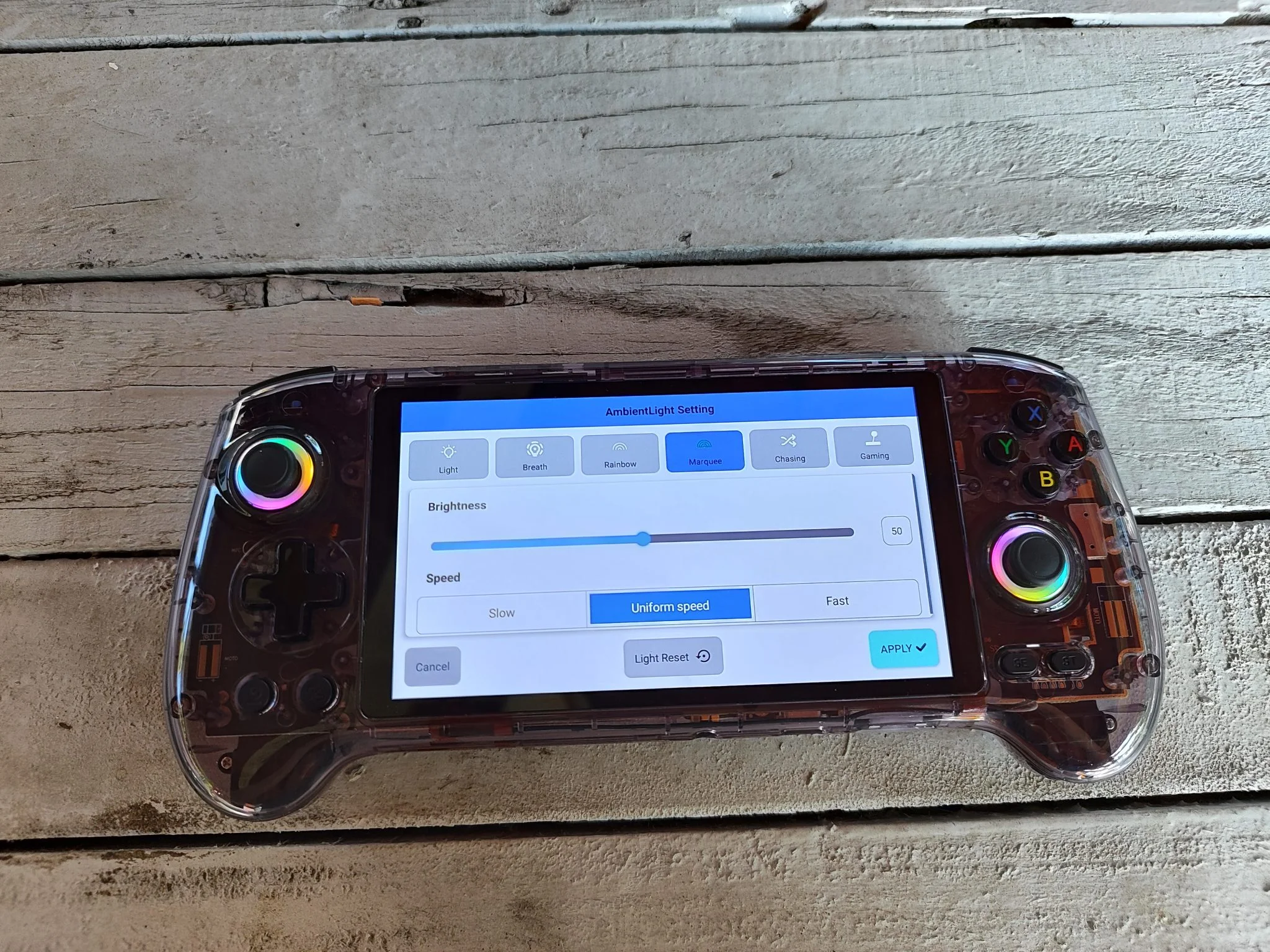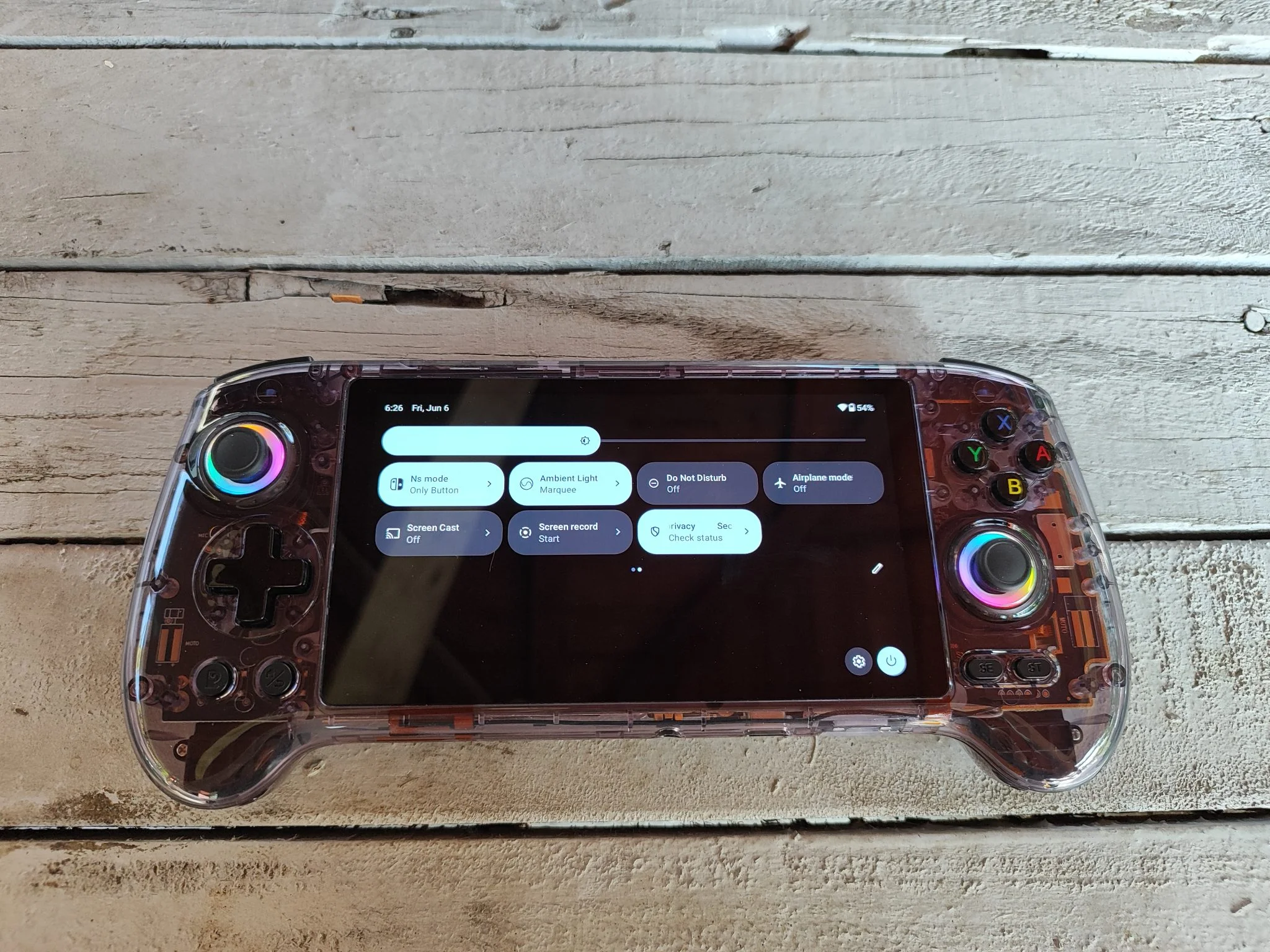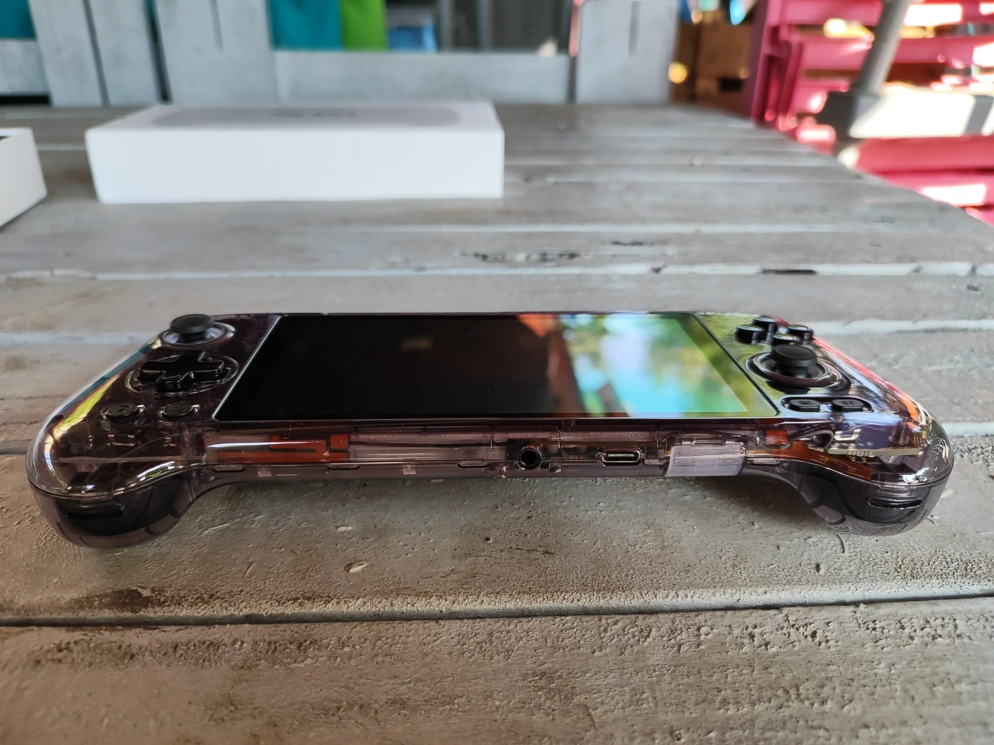 Az 5,48 colos AMOLED kijelző valódi ékkő: 1920×1080 pixeles felbontásával, mély feketéivel és élénk színeivel bármilyen retró vagy Android játék pompásan fest rajta. Az OCA laminálás miatt a betekintési szögek is kiválóak, minimális tükröződéssel. A színek kalibrálása gyári állapotban is kiváló, de lehetőség van finomhangolásra. Egyedül a PWM-villogás zavarhatja az érzékeny szemű felhasználókat, főleg alacsony fényerőn – ez viszont minden AMOLED panelre jellemző, nem ANBERNIC-specifikus hiba.