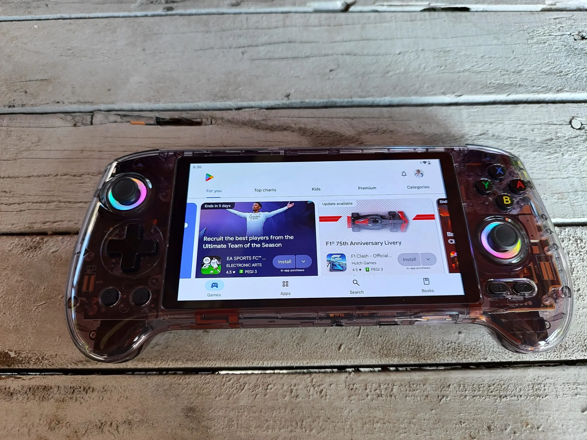 Az ANBERNIC RG557-tel együtt Android 14-et kapunk, Google Play Áruház hozzáféréssel és FOTA frissítésekkel. A rendszer gyors, gördülékeny és szinte minden elérhető hozzá: RetroArch, Daijisho, LaunchBox, Dolphin, AetherSX2, Skyline, Yuzu – ki mit szeret. A gyári Game Center app kezeli az RGB-t, a teljesítményprofilokat, a ventilátor sebességet, az érintésblokkolást és a gombtérképezést egyaránt. Van OTA frissítés, külön profilmódok (böngészés, játék, energiatakarékos), és ami külön jó: a rendszer nem rootolt, de ADB-n keresztül testreszabható.