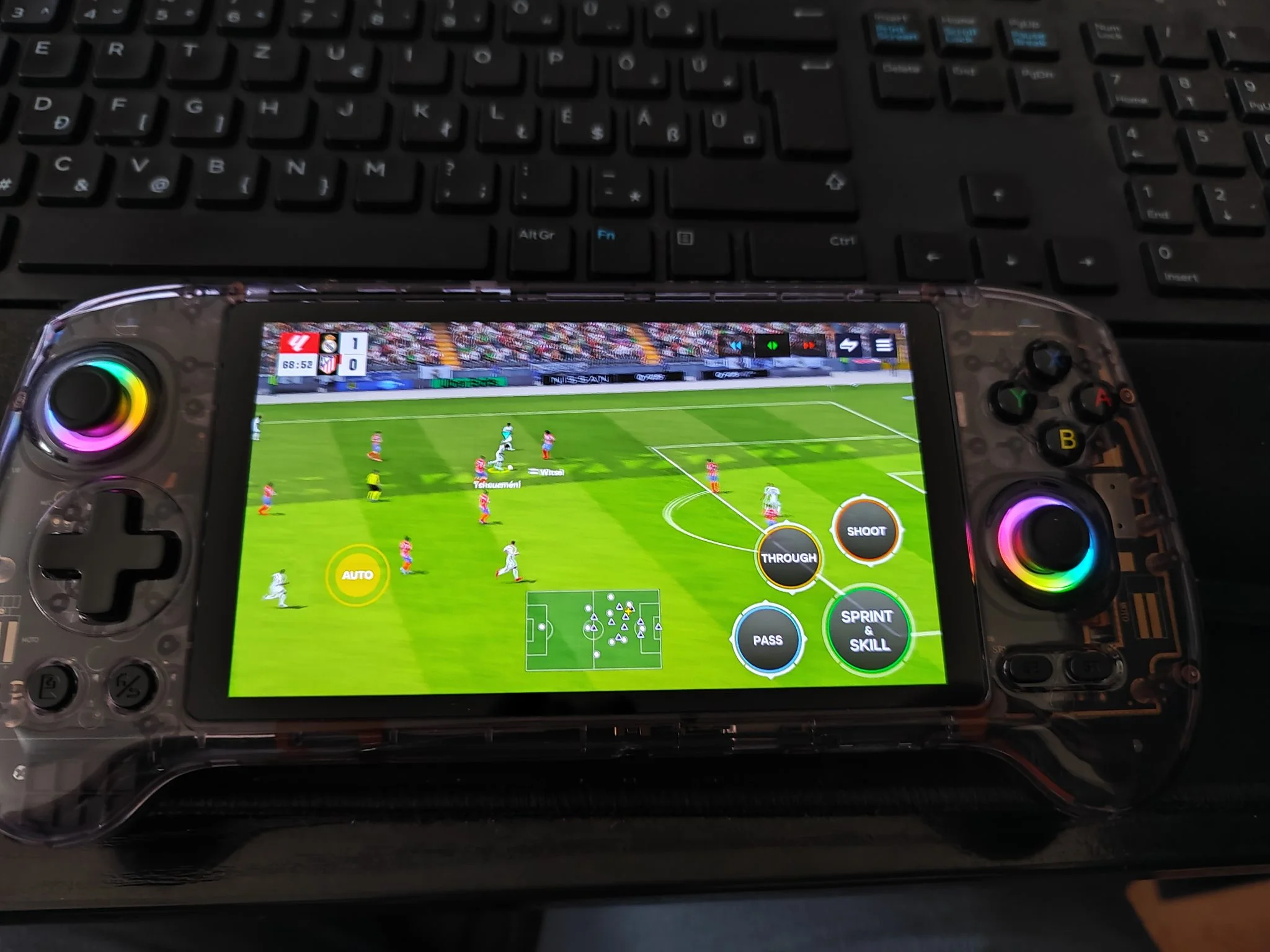 A D-pad kiváló: pontos, puha, jól reagál. A fő gombok (A/B/X/Y) gumimembránosak, kellemes nyomásponttal, a matt felületük pedig kevésbé csúszik, mint a korábbi modellek fényes verzióin. A vállgombok mikrokapcsolósak, gyorsan reagálnak, de zajosak – ez zárt térben zavaró lehet. A ravaszok viszont alulteljesítenek: túl rövidek, túl kemények, nincs bennük igazi analóg érzés, inkább digitális érzetet keltenek. Az analóg karok a legnagyobb csalódást jelentik: túl kicsik, túl mélyen ülnek és nehézkes velük a finom irányítás. FPS vagy autós játékoknál ez zavaró, de még egy PSP emuláció esetén is kényelmetlen.
