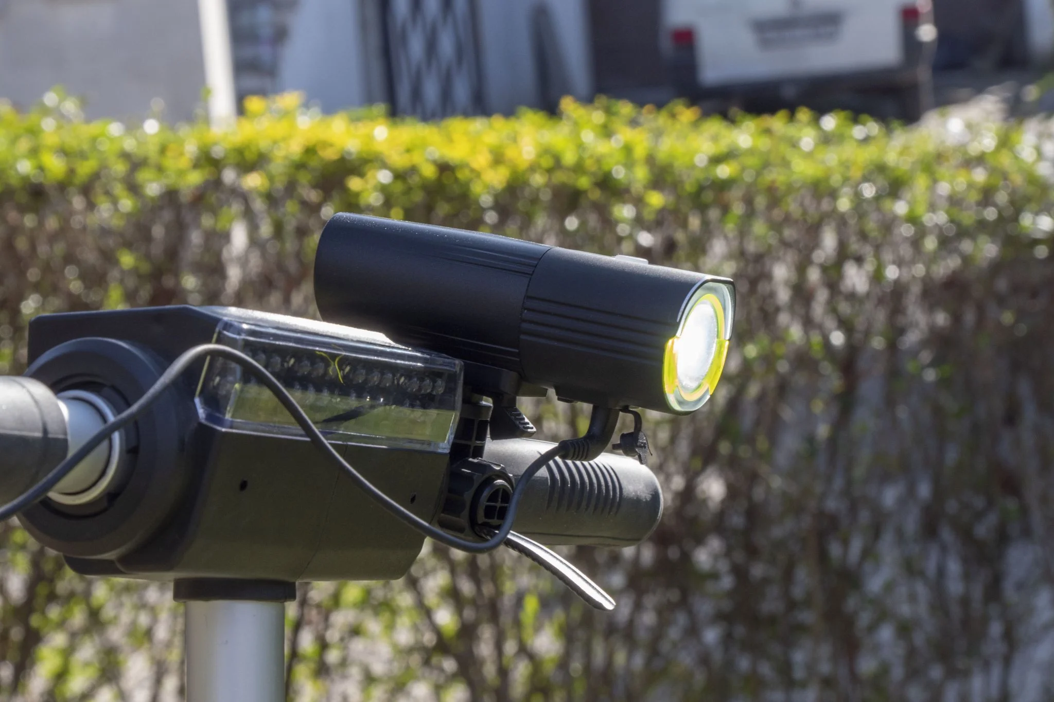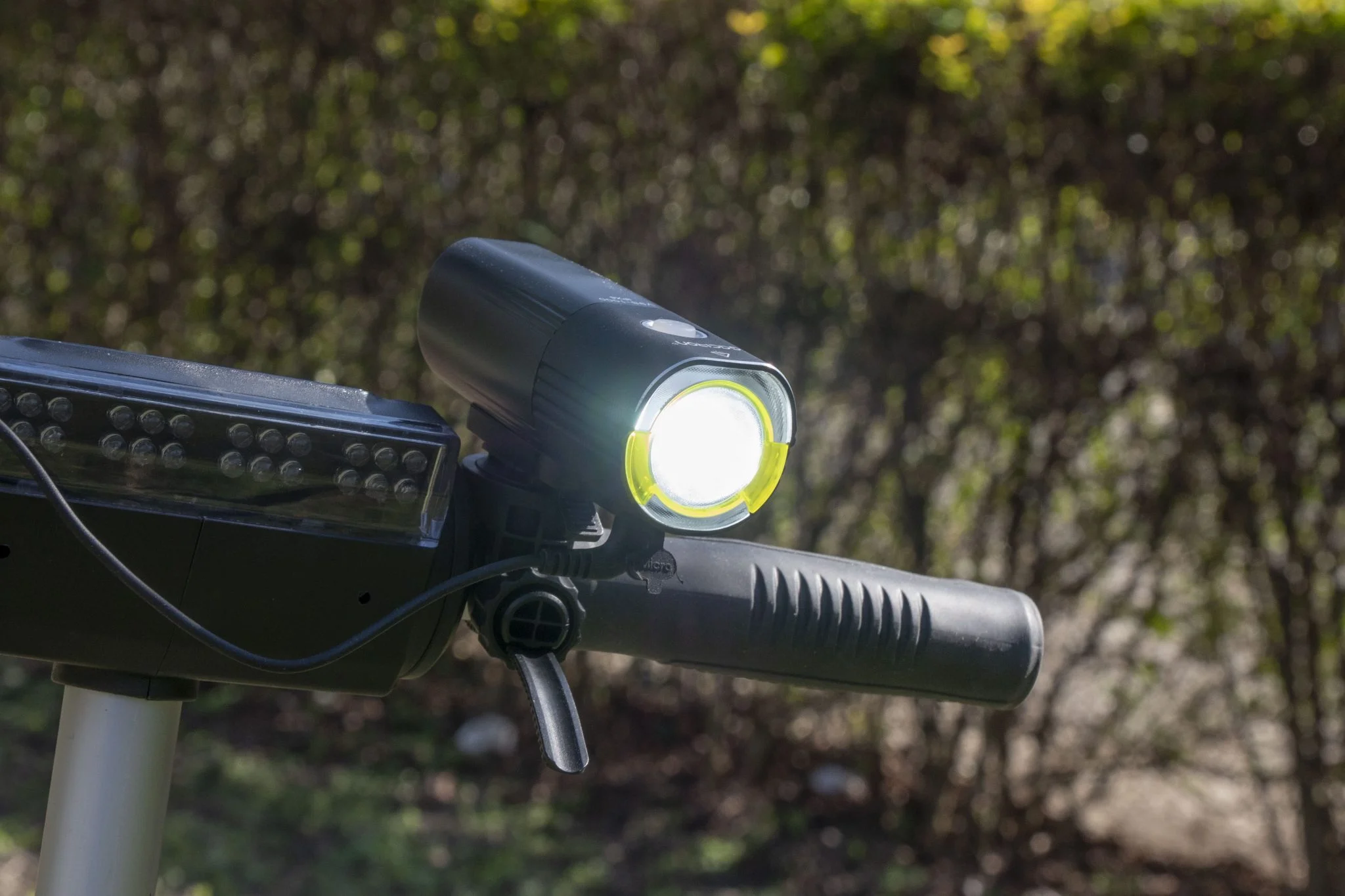Így végül egy Merida bringára és egy Kugoo S1 roller kormányára szereltem át, ahol szépen tette a dolgát. A lényeg az, hogy a jól terülő fénypászma mindig a vízszintes síkhoz képest durván 10 százalékkal lefele billentve a leghatékonyabb, ekkor eléggé messzire világít és az út egyenetlenségeit is kirajzolja. És itt jön ki a lámpa egyik legnagyobb előnye, a kifejezetten egyenletesen terített fénysugár. Szépen, 118 fokban homogén módon világít, oldalra pedig a módosított lencsének köszönhetően sárga fényt bocsájt ki, aminek állítólag balesetmegelőző szerepe van. A lényeg az, hogy nagyon szép a „képe”, sokkal jobb, mint az olcsó, noname konkurenseknek.