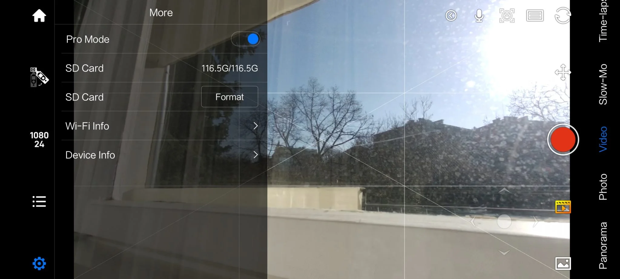 és elég jól kalibrálhatók is a paraméterek – ISO, fehéregyensúly, rekeszérték -, amiket ki is jelez a kijelzőre. Ebben a mutatóban egyébként az elődmodell is jó volt, a minősége verte a Feiyu Pocketet is, szépek a színek, nem szemcsés a kép, és rengeteg felbontás közül – 4K 30/24 FPS, 2,7K 60/48/30/24 FPS, 1080p 90/60/48/30/30L/24 – választhattok. Ráadásul a 128 fokos látószöget is lehet három lépcsőben változtatni, ez tulajdonképpen a torzítás korrekció, ami hasznos funkció. Viszont még mindig ott a „vonatfütty” a videók elején, hogy ez miért jó, az első Fimi Palm óta nem értem.