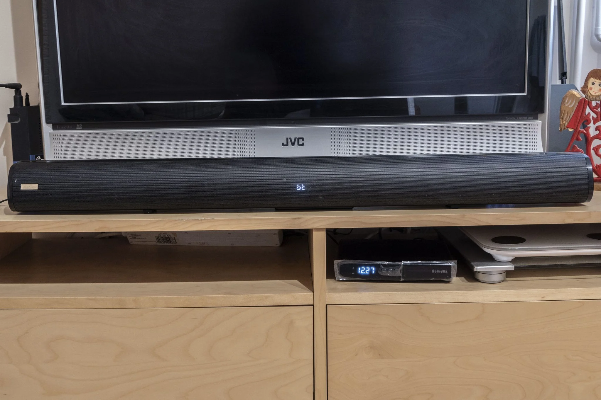 Természetesen BT 5.0-n keresztül is képes adatot fogadni, és persze ott van a már említett USB-A csatlakozó. Az újabb Bluetooth szabvány egyik előnye, hogy már nem csúszik a hang filmnézés közben sem. Az, hogy éppen melyik bemenetet használja az eszköz, egy LED-es kijelző mutatja a fronton, diszkrét fehér színnel, nem hivalkodó, teljesen kulturált. Ráadásul a minőséget sem adták alább, szerintem teljesen rendben van ezért az árért az anyaghasználat. Persze egy famagos megoldás lenne az igazi, itt azonban a készítők leginkább műanyaggal dolgoztak, de azért ez sem rossz.