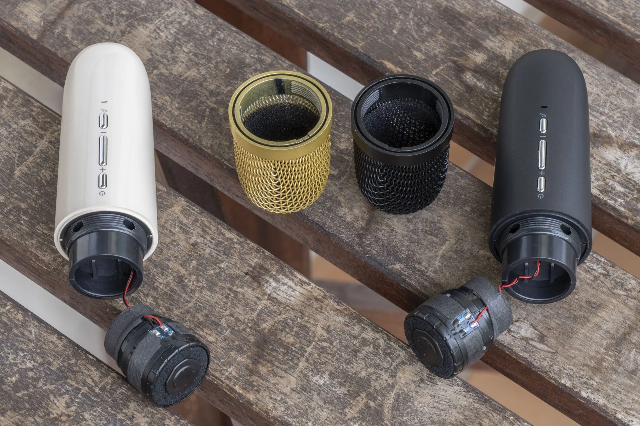 Először is nagyon masszív hatást kelt, van tömege – 1780 gramm – konkrétan jó kézbevenni. Még akkor is, ha egy kicsit bazári a kinézete, ezekkel a csillogó felületekkel, de a felhasznált anyagok minőségiek, és az összerakottság is jó. Ez azért meglepő, mert ez nem egy igazán drága termék, hiszen durván 20 000 forintot kérnek érte, ami egy ugyanekkora JBL árának fele, csak ebben már benne van a két mikrofon is.