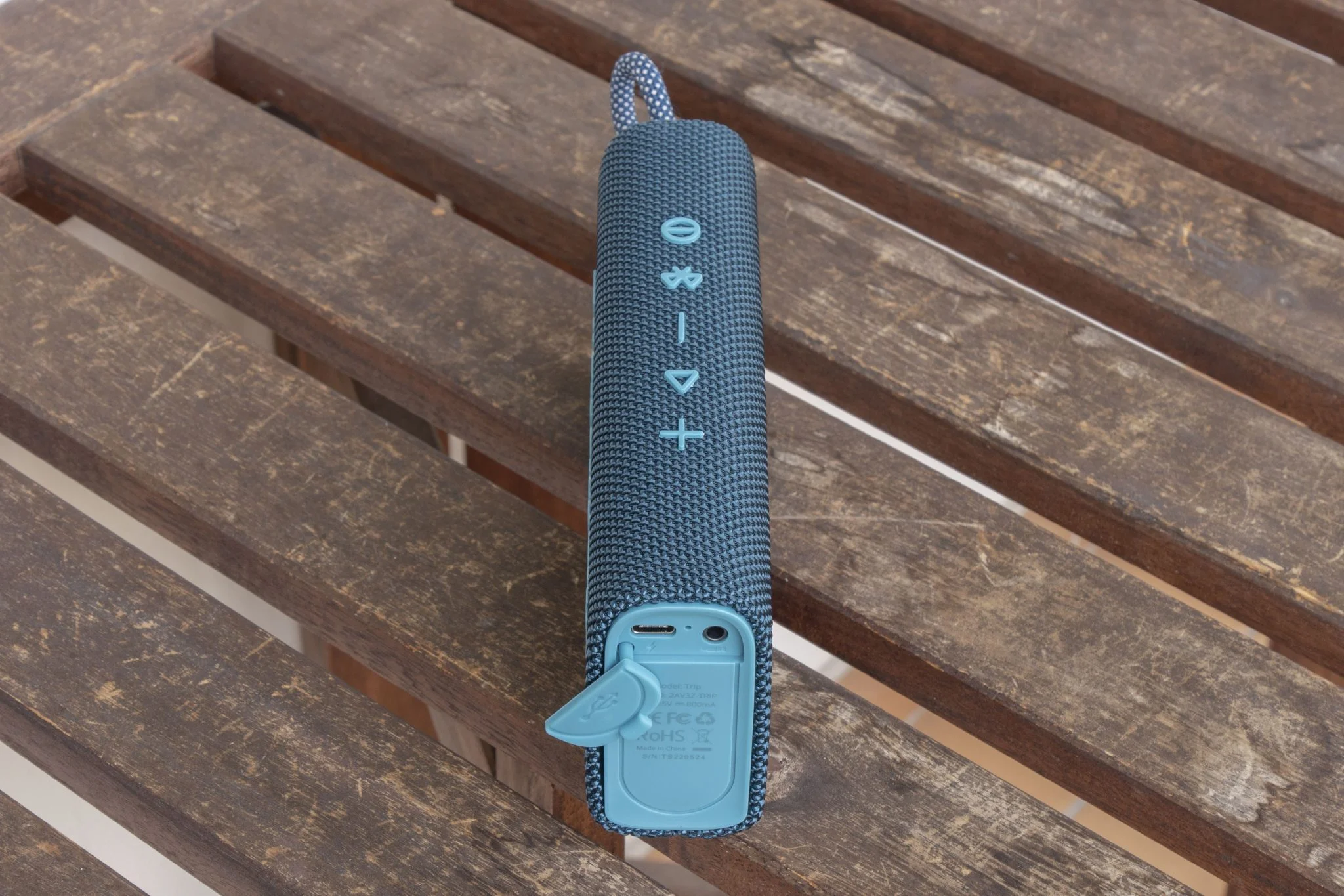 Fura, lekerekített sarkú téglatestet vontak be zöldes színű mesh anyaggal. A gombokat és a brutális méretű Tronsmart felirat színezését néhány árnyalattal eltolták, és már kész is a tökéletes összhatás. Az anyagminőség pazar, masszív kis cucc ez IPX7 minősítéssel, gyártási hiányosságok nélkül. Alul szilikonláb felel a helyben maradásért, baloldalt egy – sajnos nem elasztikus – tartófül van, ezzel tudjátok a táskátokra felcsapni. Egy karabinert elfogadtam volna a dobozban, de hát annyira olcsó a cucc, hogy ez nem elvárható, és a hiányosság fillérekből pótolható. Jobb oldalt laknak a portok, a jack és a Type-C, végre elhagyták a semmire sem jó, sosem használt micro SD-t is.