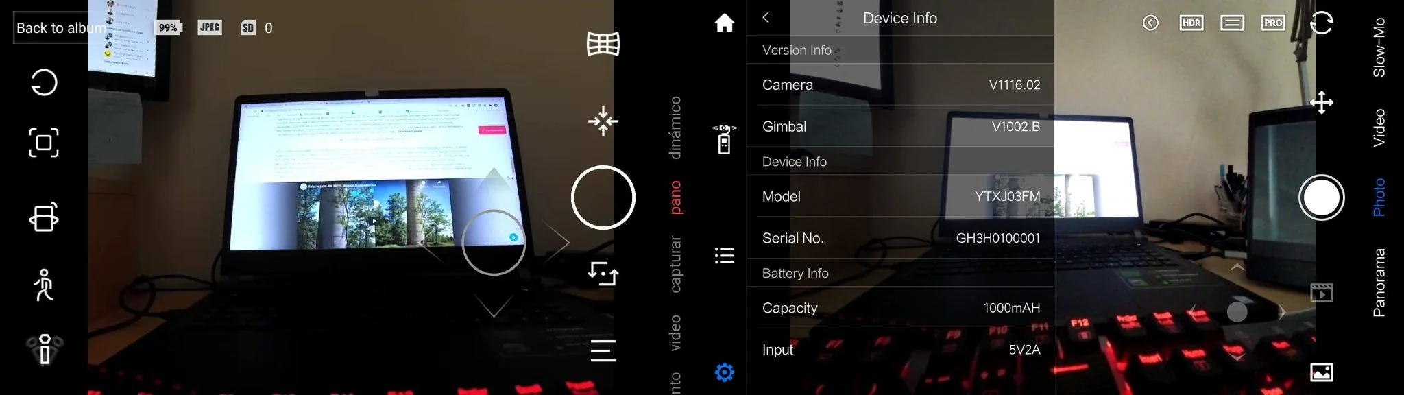 - Feiyu Pocket: gyenge app, helyenként remegések a képben, színtelen videók, pocsék tárgykövetés, csak szoftveres joystick