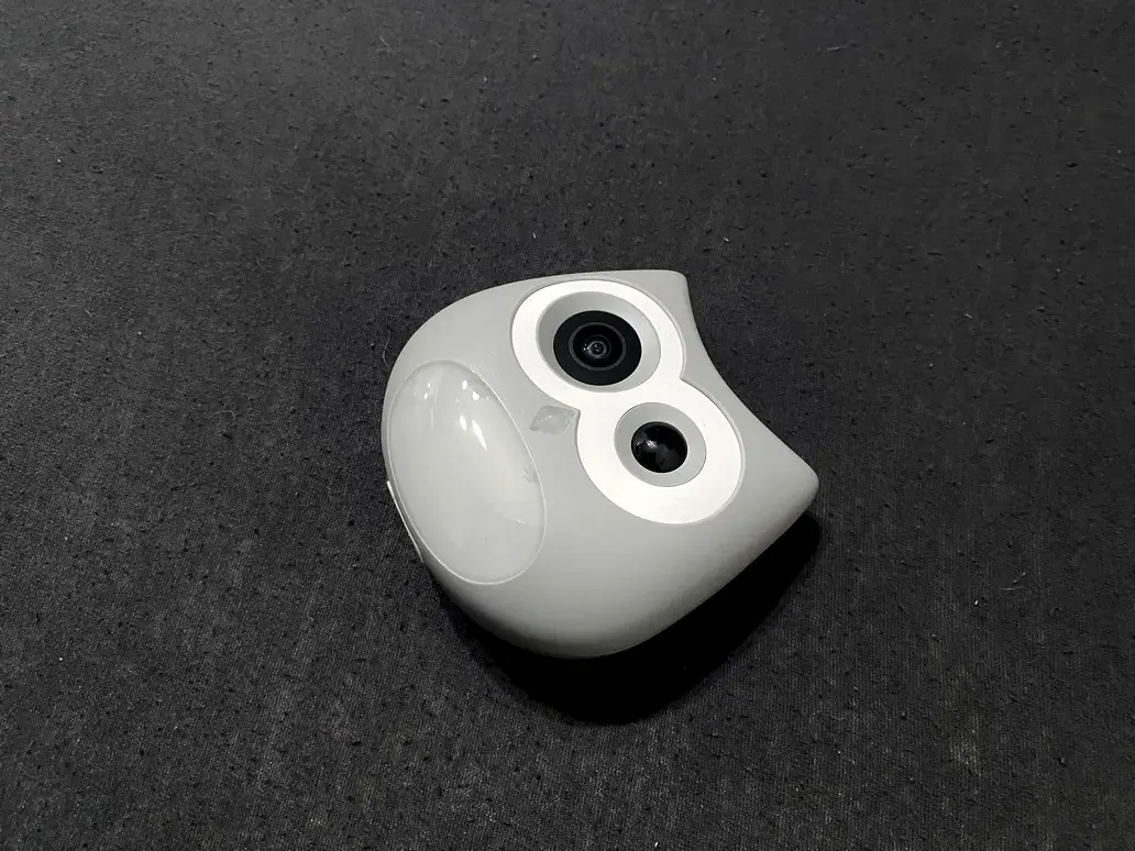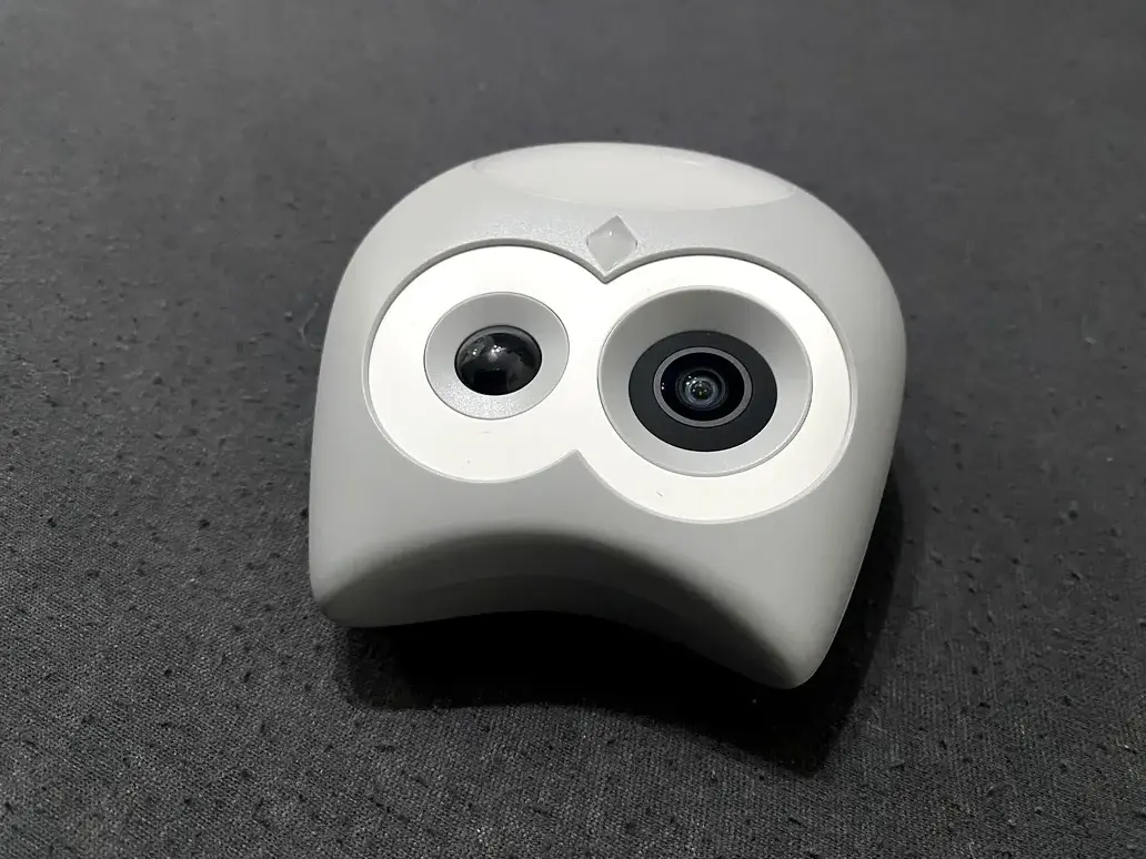 Rózsaszín és szürke színben egyaránt kapható a kamera – hozzám az utóbbi érkezett tesztre egy kicsi, minimalista dizájnú dobozban. A benne lévő kütyü úgy néz ki, mint egy kis bagoly, az anyaghasználata pedig kifejezetten minőségi. A vezeték nélküli kütyük kategóriáját erősíti, mindössze egy dupla USB-C csatlakozóval ellátott töltőkábel és egy használati útmutató tartozik hozzá, na meg egy falra felragasztható tartó.
