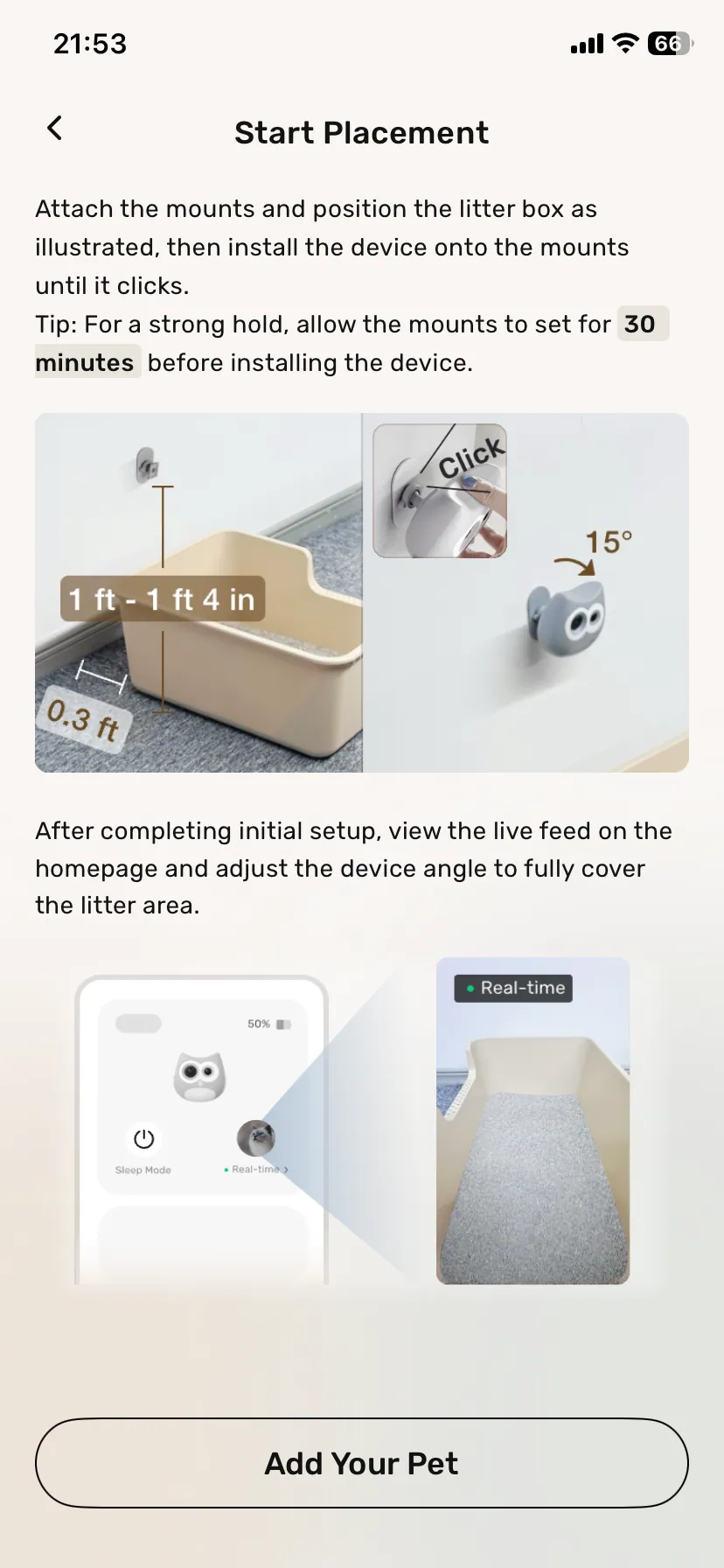 A kamera beüzemelése nem különösebben bonyolult, de a leírás és az app egyaránt segítenek, ráadásul a gyártónak YouTube-on is vannak hasznos videói, ha inkább vizuális típus vagy. A LitterLens ideális a legtöbb alomtálcához, főleg ahhoz a fajtához, ami nyitott, hiszen csak fölé kell ragasztani, fel a falra, pont úgy, hogy rálásson az alomra. Zárt alomtálca belső falára szintén rögzíthető, de oda szerintem csak akkor érdemes, ha a doboz elég nagy és a cicának nincs útban, marad elég helye megfordulni és nem zavarja őt, ugyanis a LitterLens szenzoros világítással rendelkezik, ami egy zárt alomtálcán belül zavaróan fényes lehet a háziállat számára. Nézzük, mennyire hasznos ez a kütyü a mindennapokban!