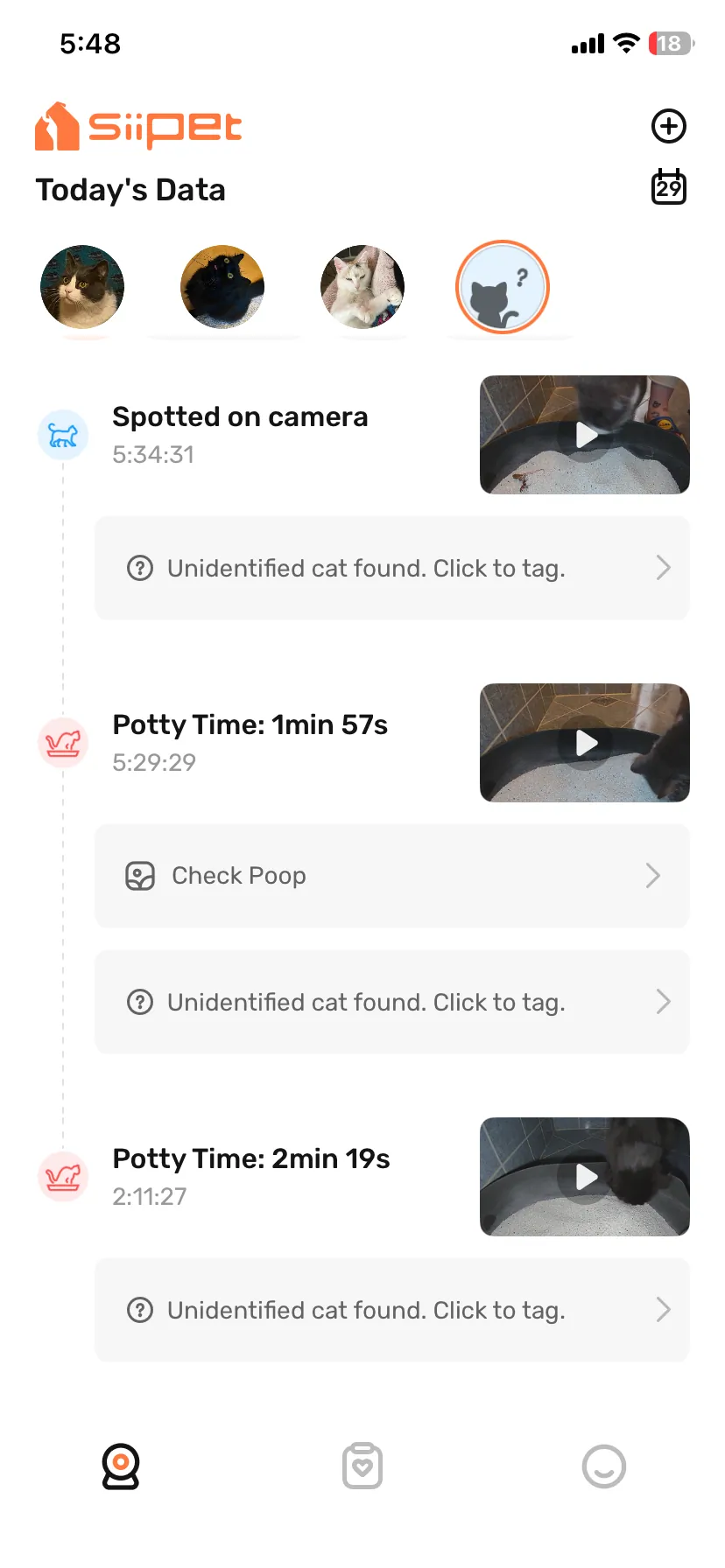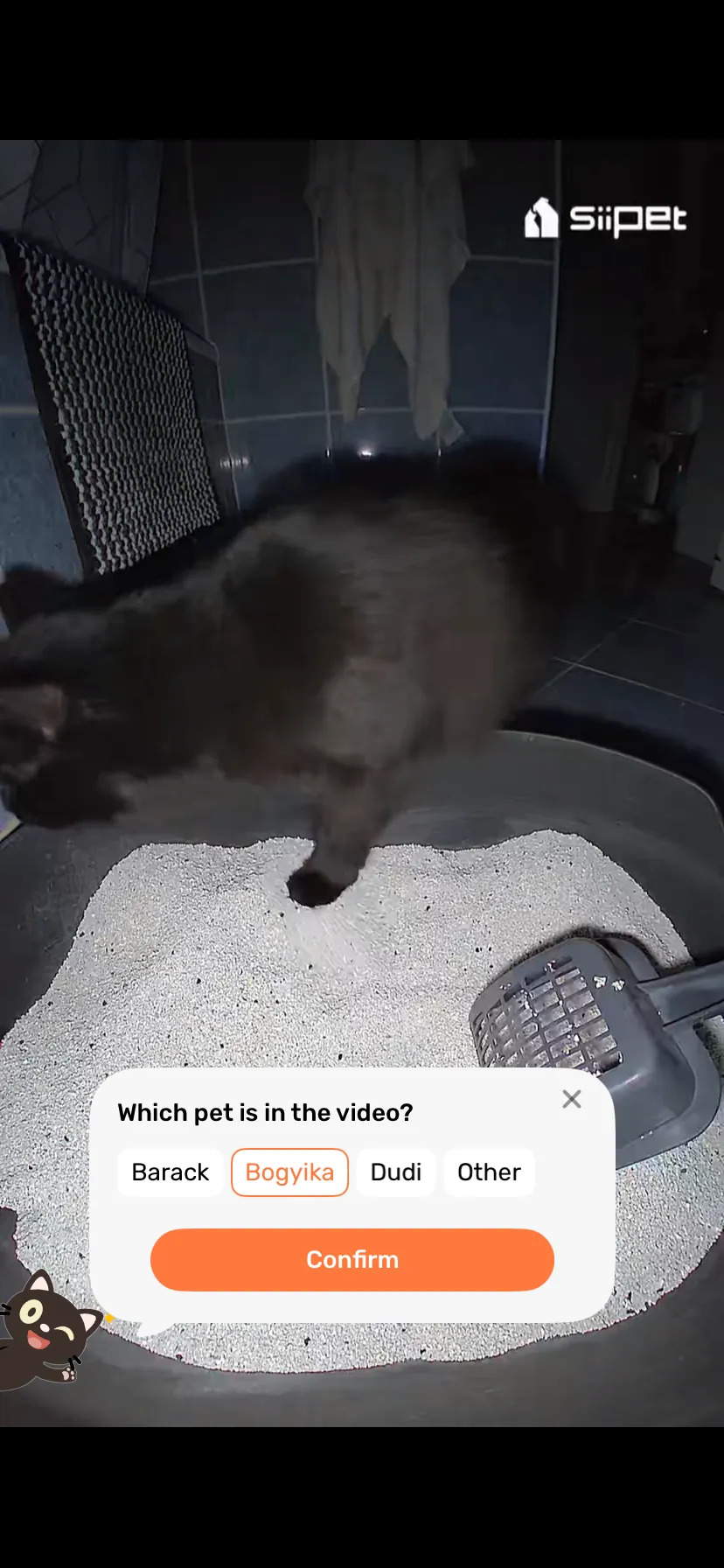 A kamera minden egyes alkalmat rögzít, amikor a háztartásban lakó cicák használatba veszik az almot,