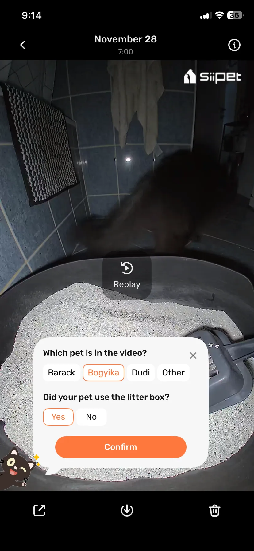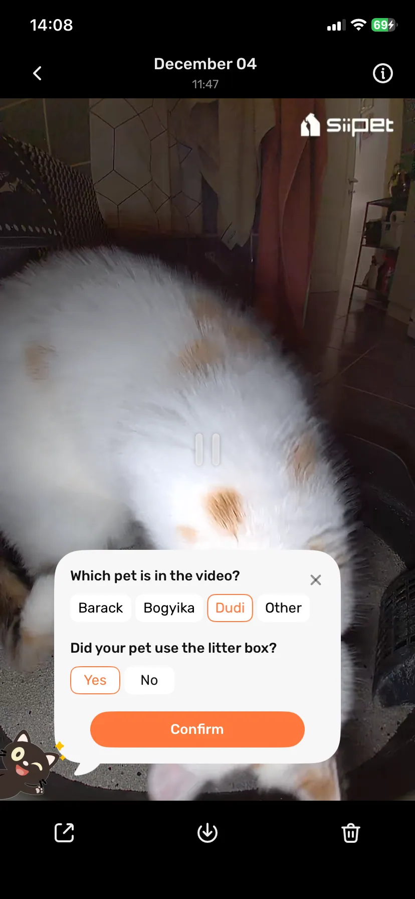 így a széklet minden alkalommal visszanézhető az applikációban kép és videó formájában egyaránt. Ez egyfelől undi, másfelől viszont igen hasznos, mert így baj esetén elég konkrétan meg tudod mutatni az állatorvosnak, hogy mit láttál, még ha nem is túl guszta.