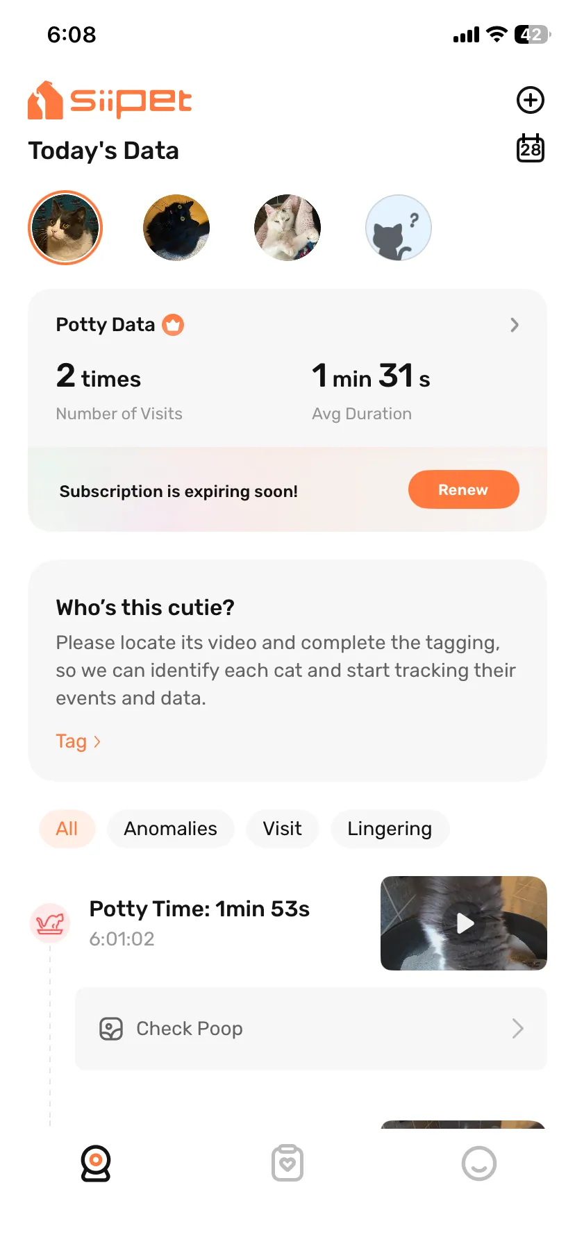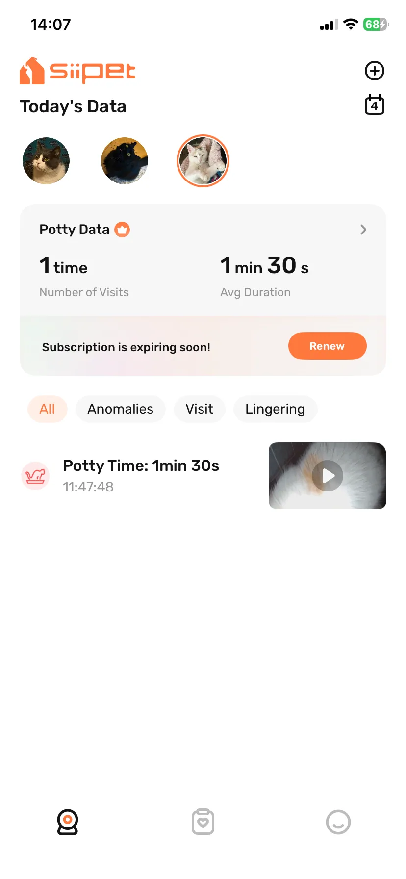 A SiiPet LitterLens kamerájával nehezen indult a barátságunk, pedig tudtam, hogy 3 cica mellett hasznos segítséget nyújthat. Egynél több háziállat esetén türelmesnek kell vele lenni, hogy a háztartás minden macskáját felismerje és így reális statisztikát tudjon alkotni, amit egészen 12 hónapig lekövethetsz, visszanézhetsz. A türelem mellett egy kis segítségre is szorul: eleinte meg kell neki mondani a videók megnézése alapján, hogy melyik cica melyik és mi számít átlagos székletnek, de ezután gördülékeny a működése. Két vaklármát leszámítva eddig csak arról tájékoztatott, hogy lényegében minden rendben, viszont baj esetén valós segítség lehet.
