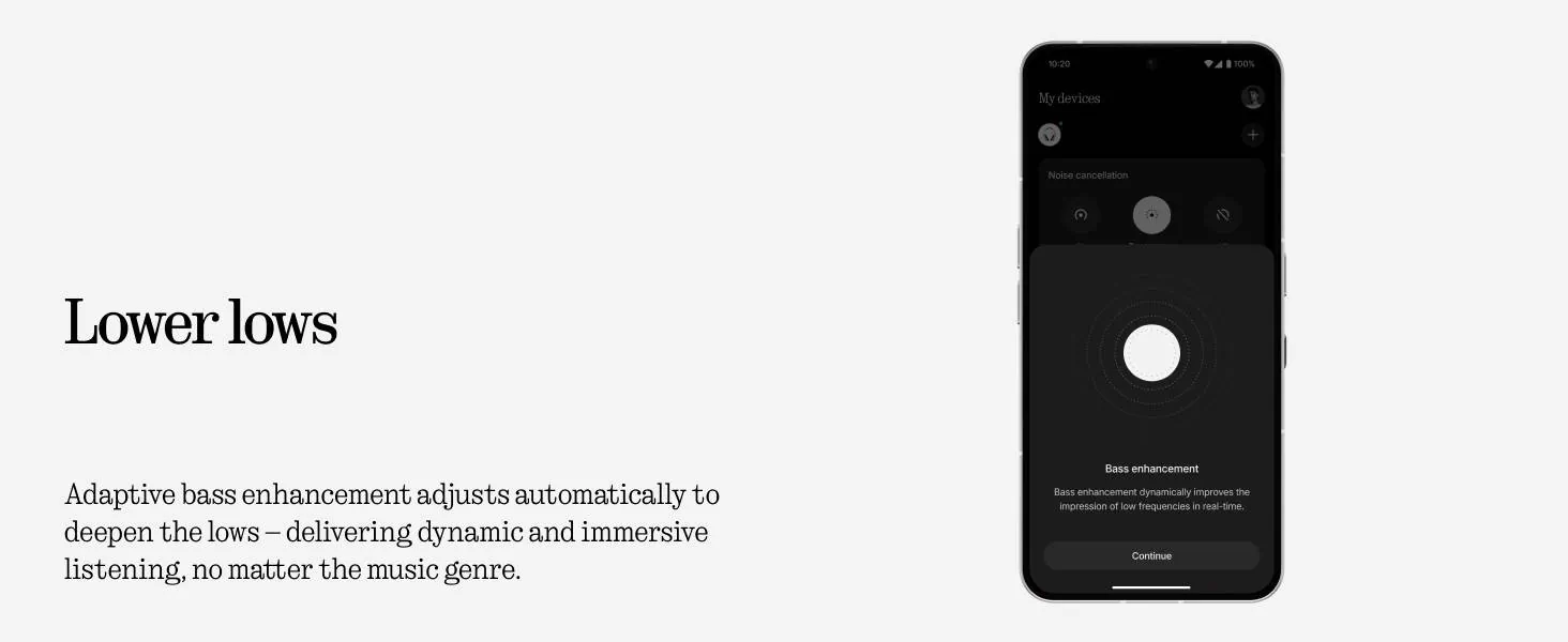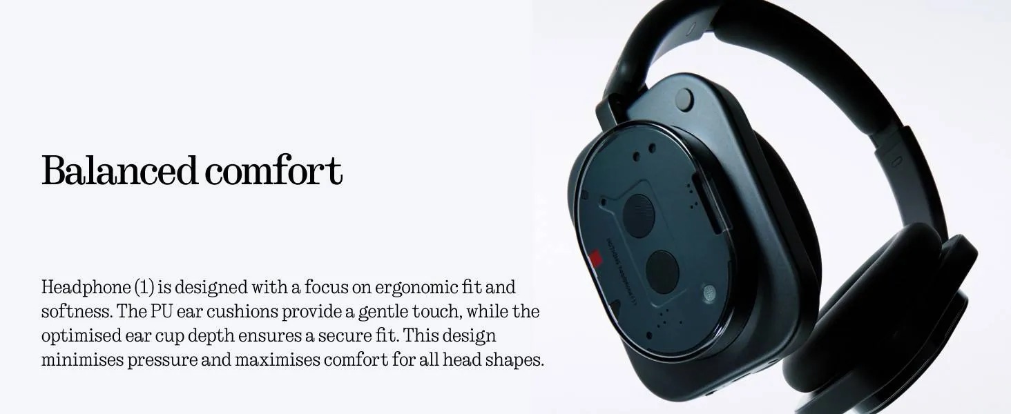 A Nothing Headphone (1) hibrid aktív zajszűrést (Hybrid ANC) használ, amely a fülkagyló külső és belső mikrofonjaival érzékeli a zajokat, majd ellenfázisú jelet hoz létre azok kioltásához. A rendszer akár 40-42 dB csillapításra képes, és adaptív módon a környezethez igazítja az elnyomás mértékét – például utazáskor erősebben, irodában finomabban dolgozik.