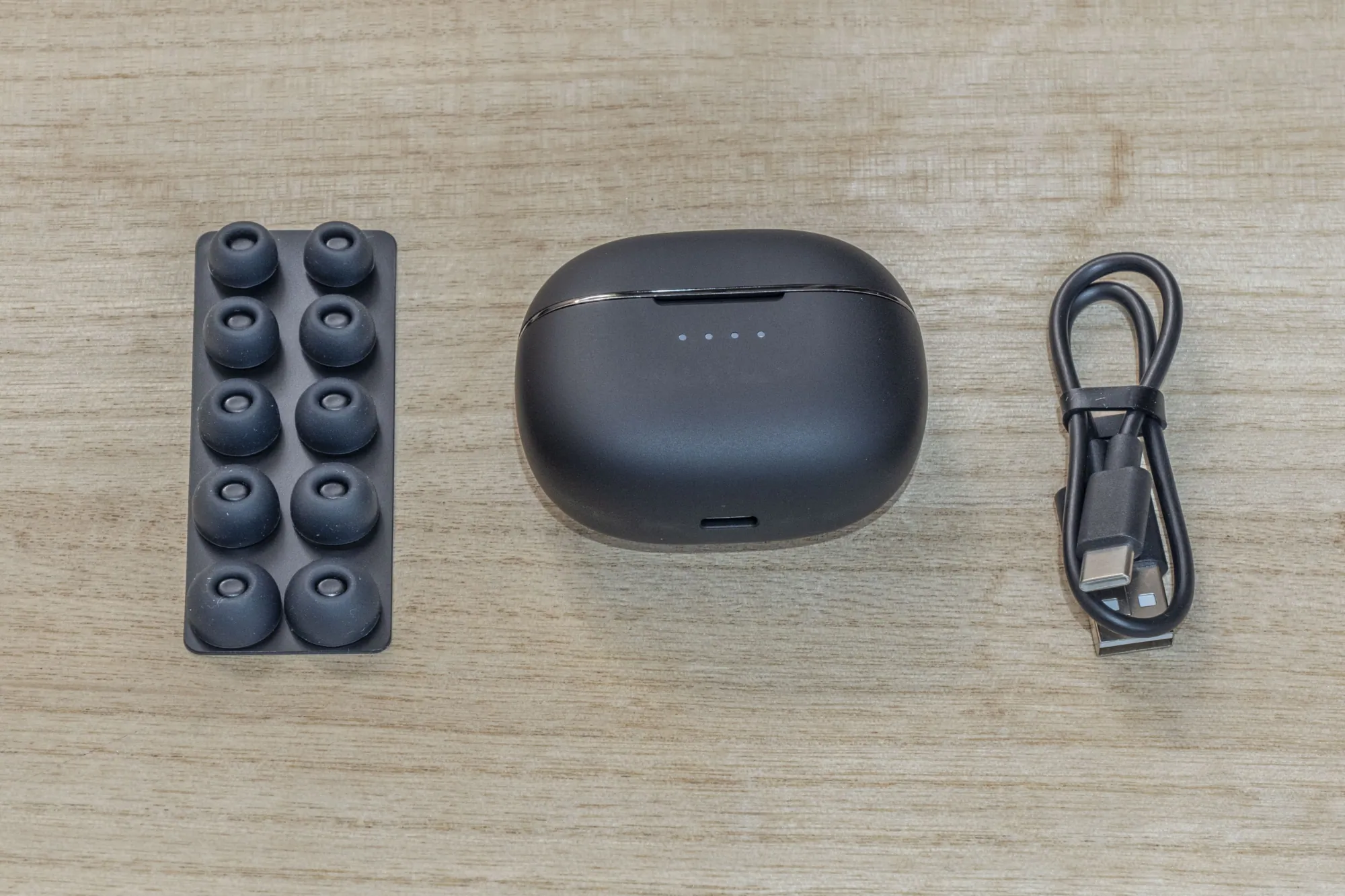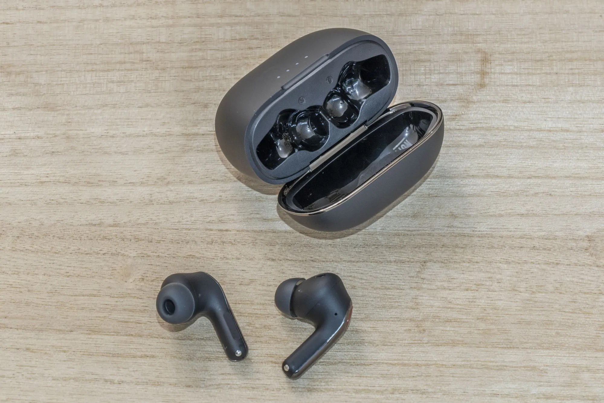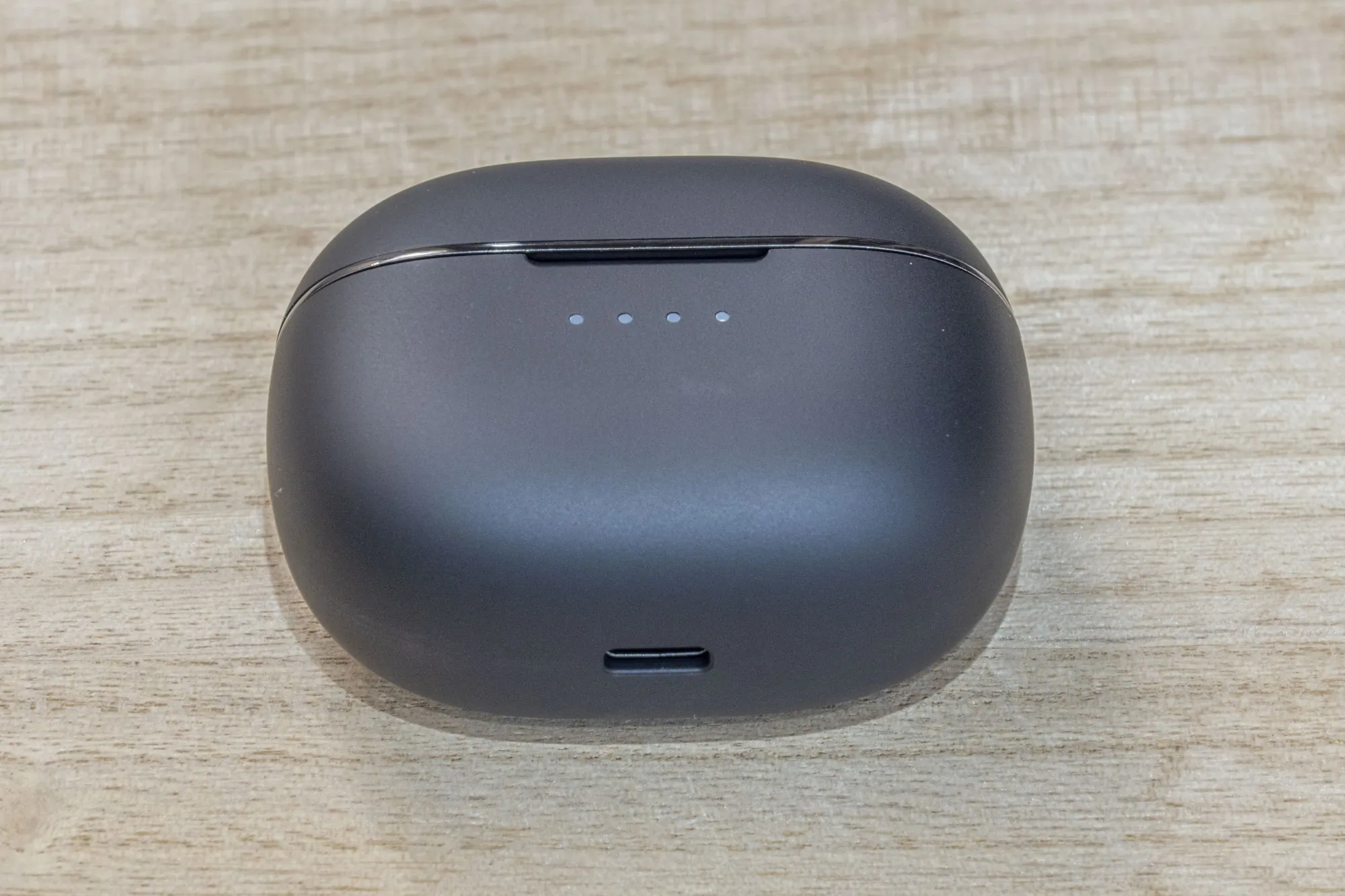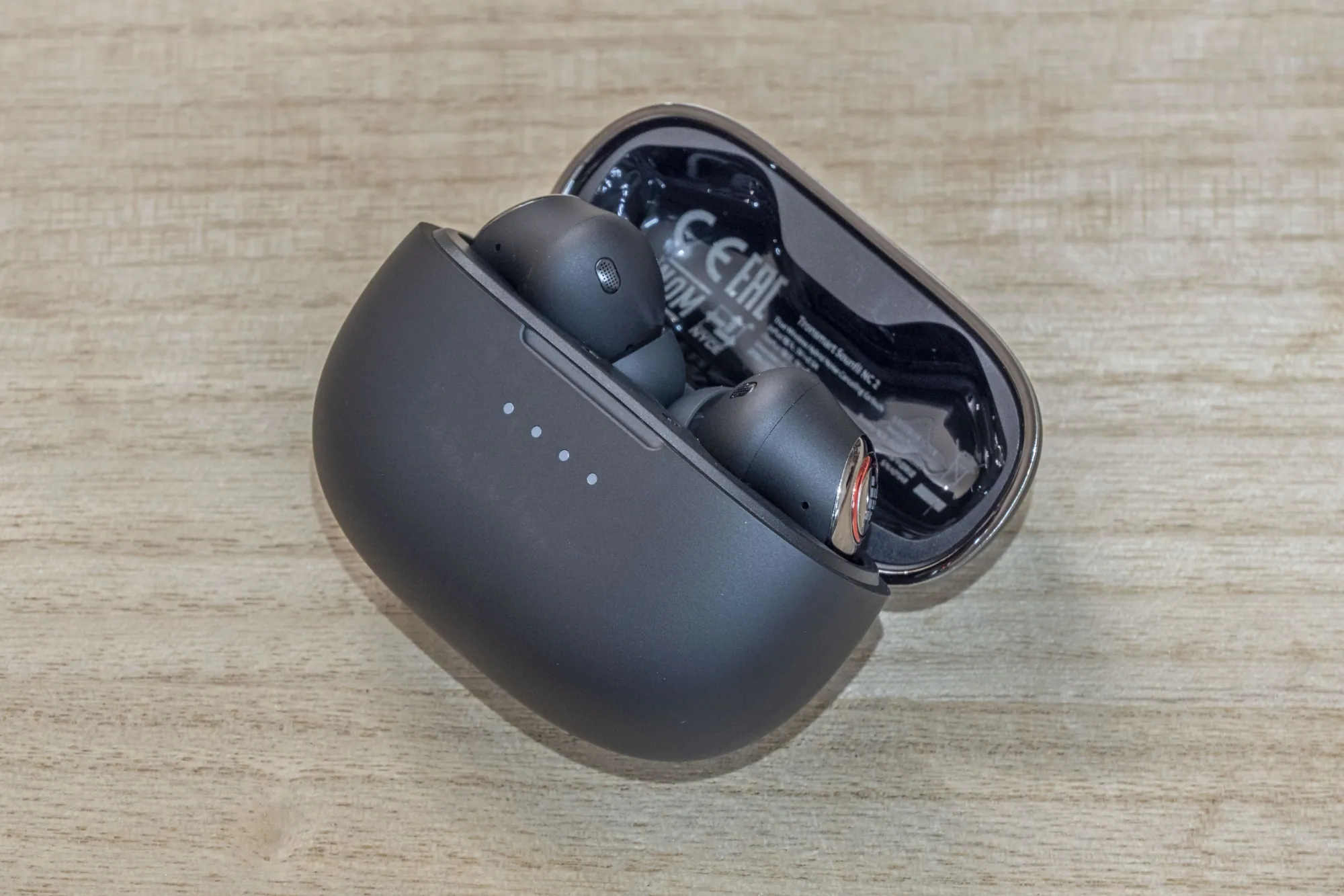 Ha kinyitjátok a Tronsmart Sounfii NC 2 töltőbölcsőjét, akkor felvillan a négyelemű töltöttségjelző, ami jópofa.