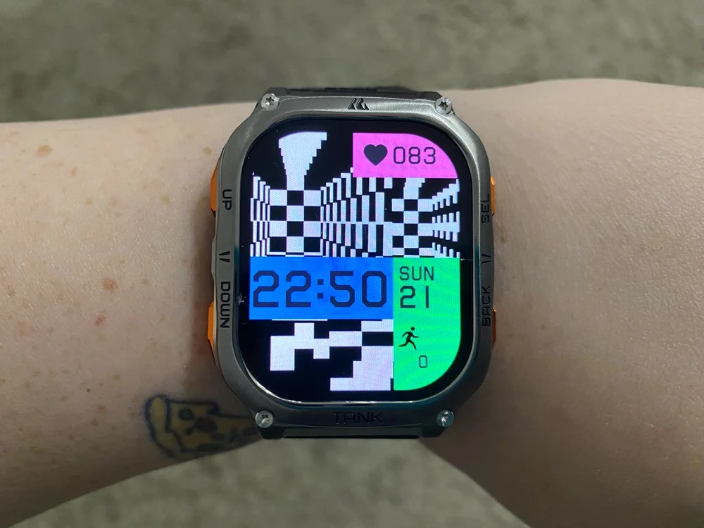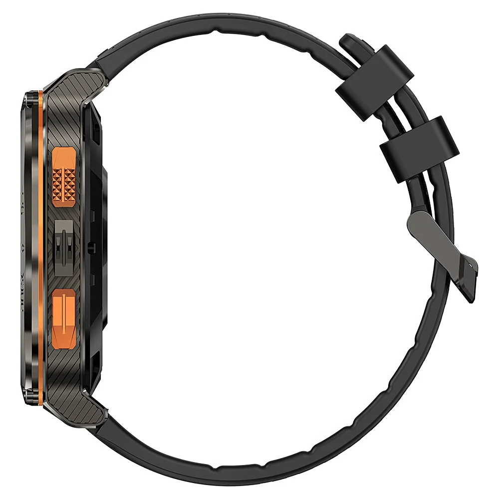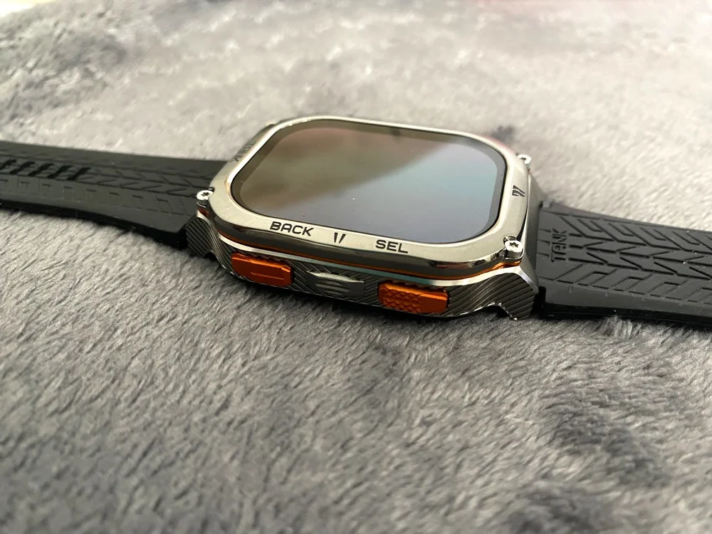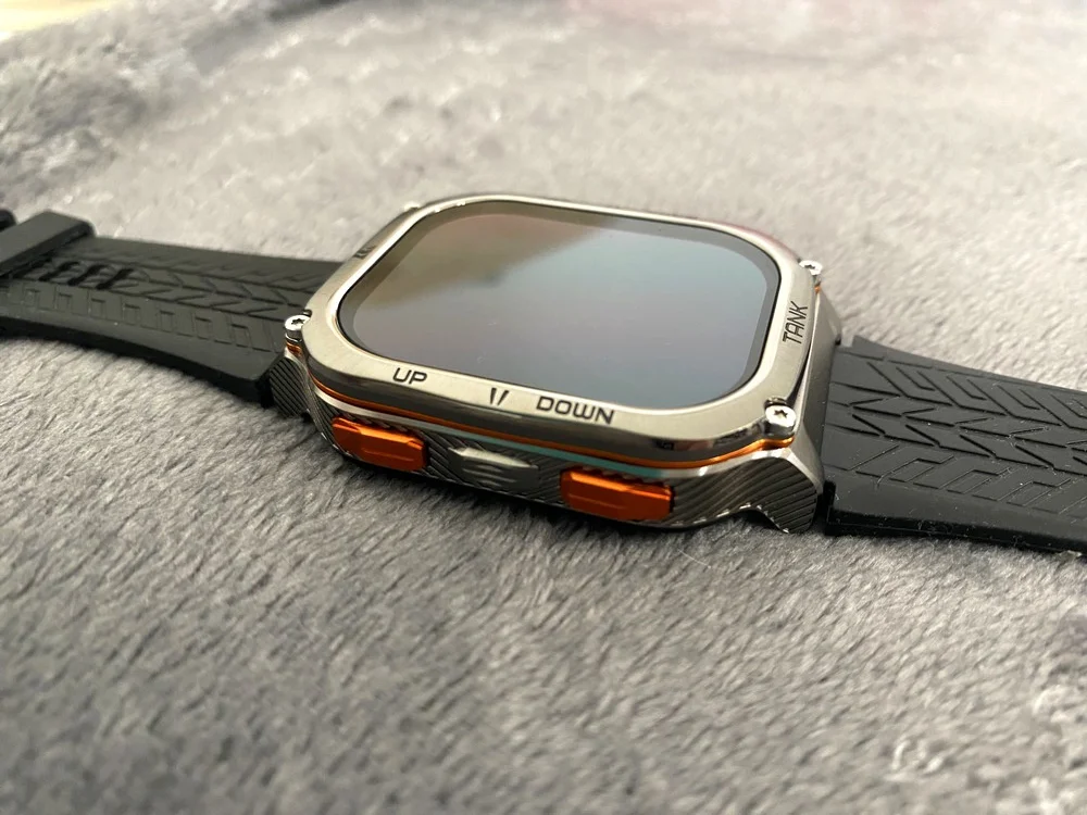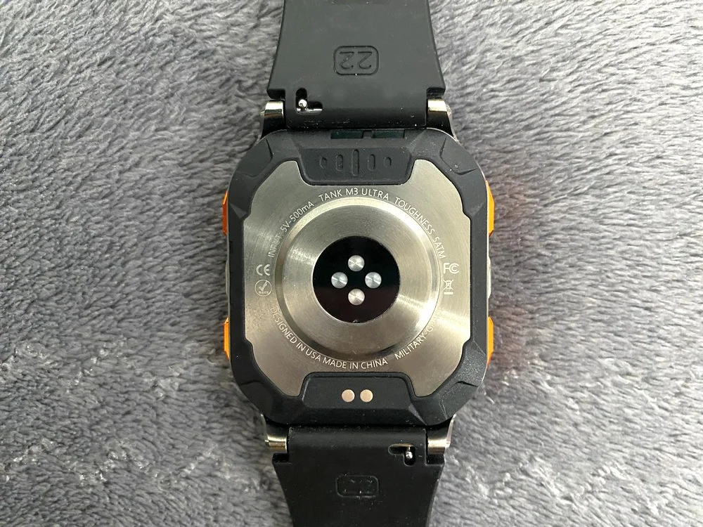 Az óratest ezüstös szürke és narancssárga színű, teljesen fém. Rozsdamentes acélból készült, nagy szilárdsággal és jó korrózióállósággal büszkélkedhet. Corning Gorilla Glass védi a kijelzőt és az óratest alján található szenzort is, ettől pedig stabil, karcálló és nem sérül egykönnyen. Igazán brutális darab, hiszen ezeken felül a MIL-STD-810H szabványt is teljesíti az Apple Watch Ultra 2-höz hasonlóan, ami egy katonai tanúsítvány. Ha egy eszköz megfelel ennek, akkor számos, kemény körülményt kell elviselnie, ilyen például a vízbe merítés, az extrémen alacsony és magas hőmérséklet, a napsugárzás, az eső, a pára, a homok, a por és hasonlók. Ezzel együtt természetesen IP69K védelemmel is rendelkezik, így abszolút por- és nyomásvédett. Vízzel kapcsolatos tevékenységekhez bátran ajánlott, 5ATM besorolású, tehát 50 méterig vízálló.