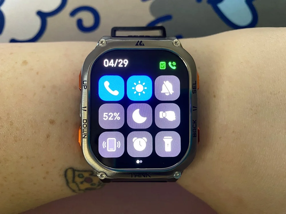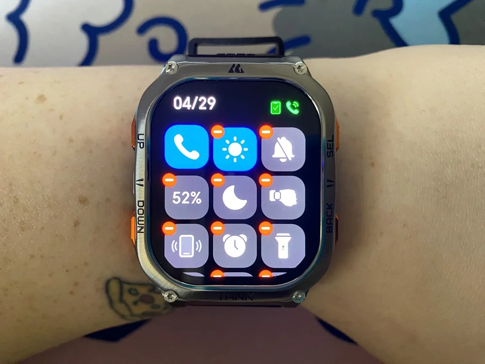 Az első bekapcsolást követően jöhet a felfedezés, az okosórát egyáltalán nem bonyolult kezelni. A képernyőt fentről lehúzva az alapokat találod, mint például az ébresztőóra, a stopperóra, az időzítő, az elemlámpa, a telefon megkeresése funkció és hasonlók. Egy bővebb listából kiválogathatod, mik kerüljenek ide, de a helyek korlátozottak.