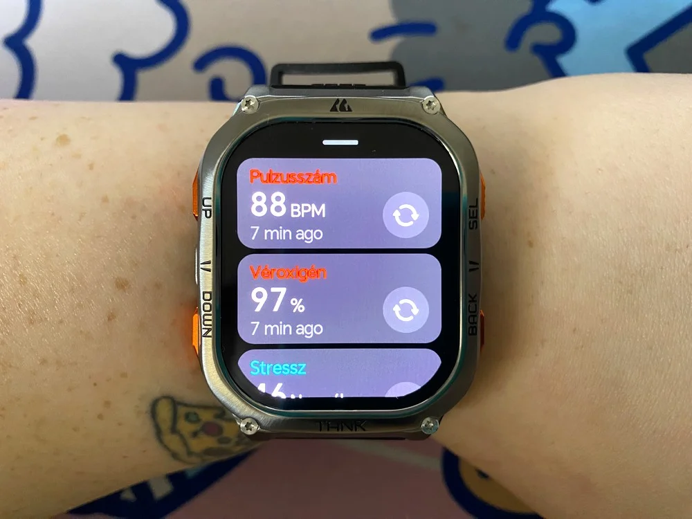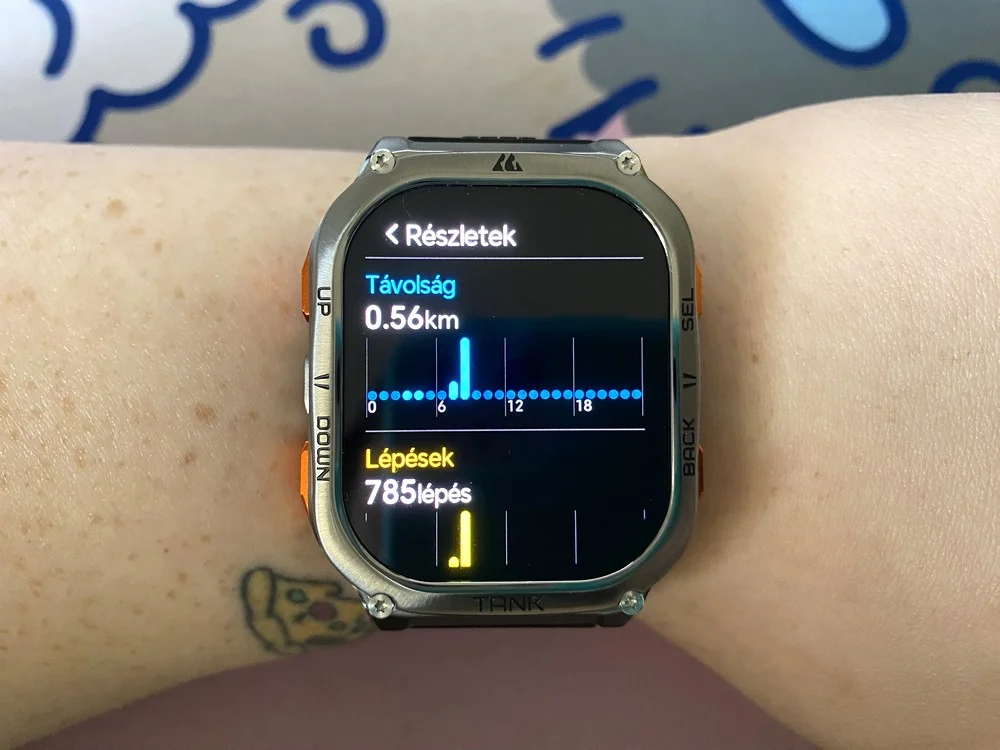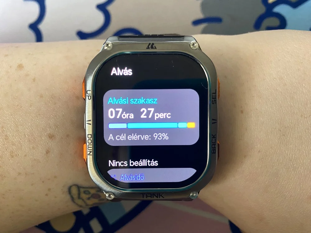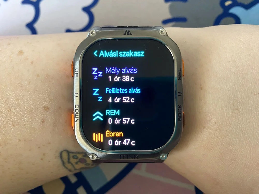 Az M3 Ultra egészségügyi nyomon követése példaértékű, hiszen 0-24-ben monitorozza a pulzusszámodat, a véroxigénszintedet és a stressz szintedet, de a leírásban szereplő vérnyomást senki se higgye el. Természetesen nagy eltéréseknél azonnal jelez és a menstruációs ciklus lekövetésére is képes, illetve az alvási szokásokéra úgyszintén. Meglepődve tapasztaltam, hogy az alvási szokásaim elég rosszak, mivel az óra egyértelműen kimutatta, hogy kevés a mély alvás fázisa, viszont tippekkel is ellátott, mit tudnék tenni a javítás érdekében. A klasszikus lépésszám, távolság és elégetett kalória figyelése szintén adott.
