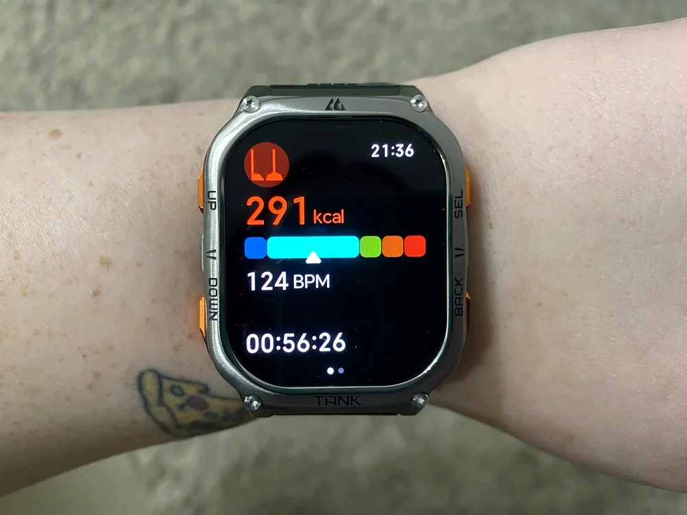 A helymeghatározáshoz képes használni Beidou, Glonass, Galileo, GPS, QZSS és NAVIC műholdakat, ami a gyakorlatban azt jelenti, hogy szabadtéren egy szempillantás alatt talál GPS jelet az óra és már kezdődhet is az edzés. Minden GPS műhold legalább két vivőfrekvencián sugároz, a Kospet M3 Ultra esetében ez a két sáv az L1 és az L5. Előbbi egy magas frekvencia, ami alkalmas a nyílt vadonban történő helymeghatározáshoz, utóbbi pedig ennek az ellentéte, ami a nagyobb interferenciával, például városi területen történő pozicionálásban lesz segítségedre. A kettő együtt felel a gyors és pontos beállításért. Az mondjuk negatívan érintett, amikor biciklizés közben egyszer csak megszakadt a kapcsolat az óra és a telefonom között, bár ez csak egyszer fordult elő. Az M3 Ultra percekig az újrakapcsolódásra várt, míg a telefonom egyértelműen azt mutatta, hogy párosítva vannak. Az edzés részleteit ugyan megtartotta az óra, viszont magától lezárta, így új kört kellett indítanom.
