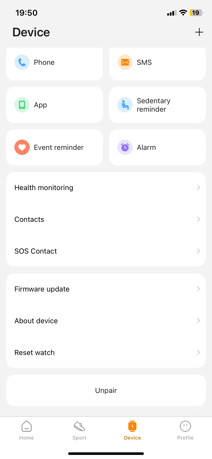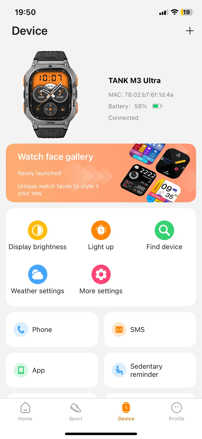 A KOSPET FIT applikációt mindenképpen érdemes letölteni, mert itt bővebben nyomon követhető minden egészségügyi állapottal és sportolási teljesítménnyel kapcsolatos részlet. Kezdőoldalán az előbb leírt, legfontosabb információkat láthatod (napi tevékenység, pulzusszám és hasonlók), a sport fül alatt pedig az összes edzésedet mindenféle diagrammal kiegészítve, illetve itt böngészhetsz a sportmódokból. A „Device”, azaz eszköz fülön láthatod az óra töltöttségi állapotát és itt érhetők el az olyan nyalánkságok, mint például az óralap galéria, ahol több, mint 500 képernyőből válogathatsz, az utolsó lapon pedig a profilbeállításokat találod.