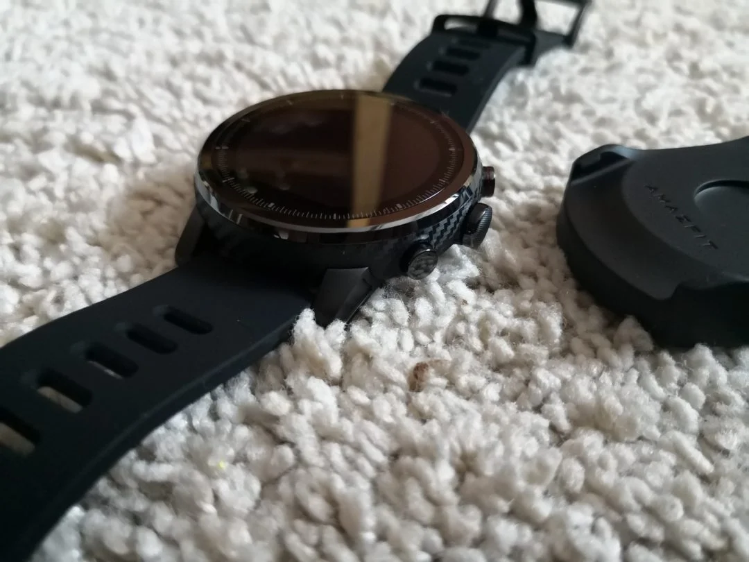 A nemes anyagok használata nem merül ki az üvegnél, hisz a kerámia igazán jó karcálló képességekkel rendelkezik és a töréstől sem igazán kell tartanunk, én már rengeteg alkalommal csaptam oda a saját órámat, de még mindig újszerű állapotban van. A három gomb rozsdamentes acél, a ház pedig maradt műanyag, de karbon textúra feldobja, szerintem jobban néz ki, mint az előd, bár picit vastagodott.