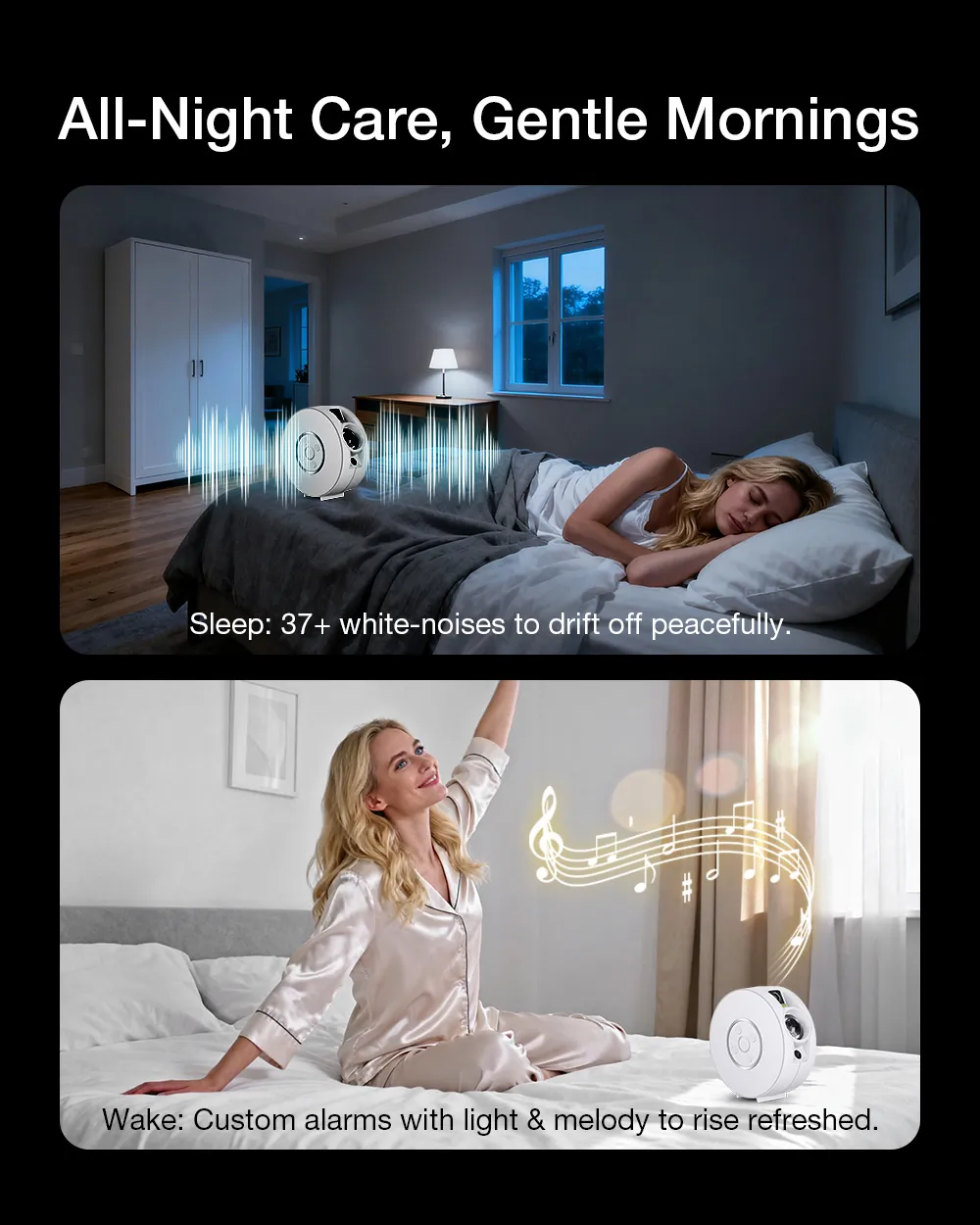 - Bluetooth hangszóró, fehérzaj és ébresztő funkció