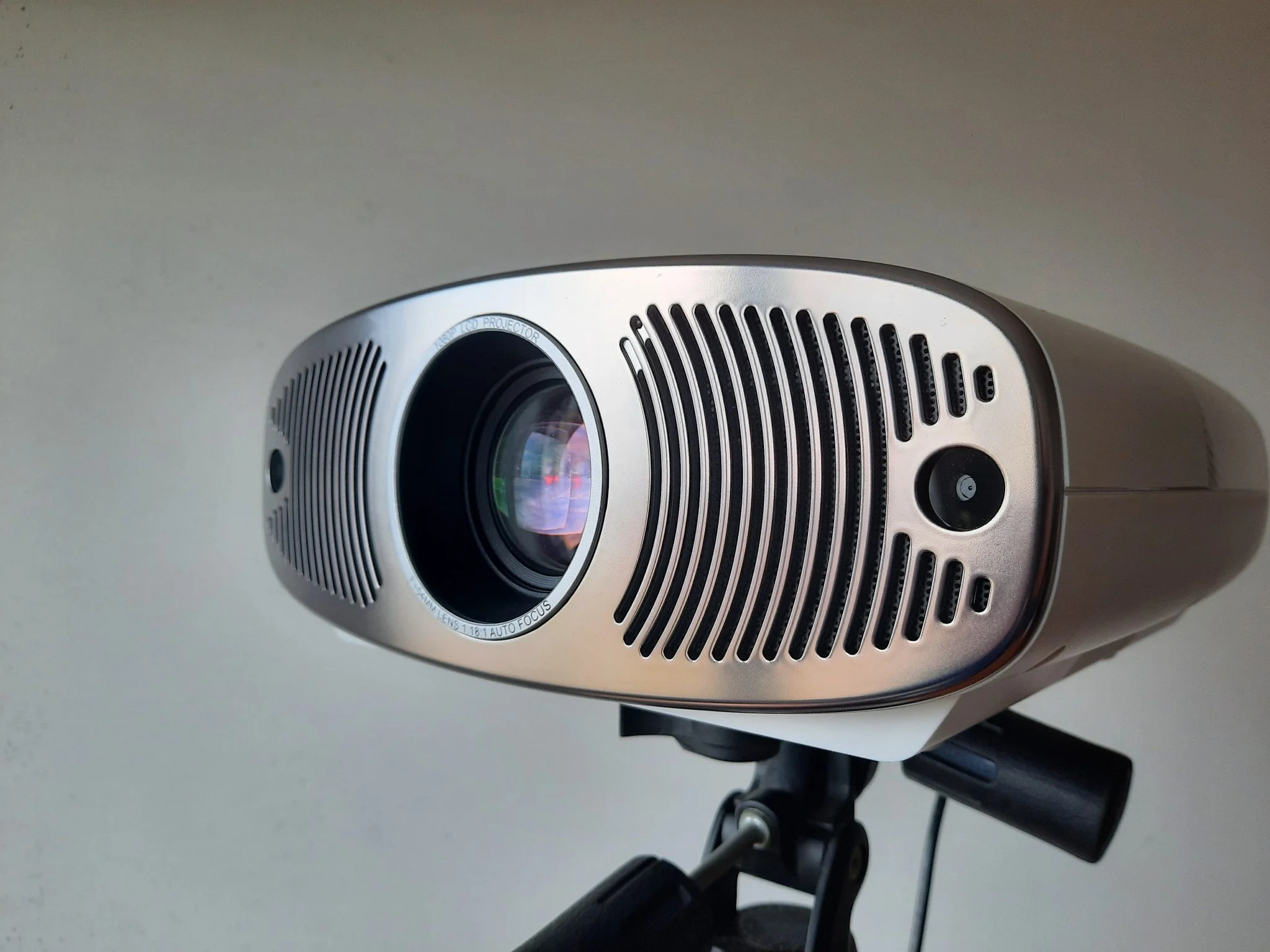 A folyamatosan dolgozó hűtés körülbelül 35 dB-es zajkibocsátással jár, fél-egy méterről mérve. Ha ilyen kis távolságban használja valaki, akkor jól jön a jack csatlakozó, hogy a ventilátor zaja ne legyen zavaró. Nagyobb távolság esetén ezt simán elnyomja a beépített, két darab 10 wattos hangszóró, amik meglepően tiszta és dinamikus hangot produkálnak, de Bluetooth 5.0 kapcsolaton keresztül bármilyen külső hangrendszer ráköthető a projektorra. Egy szintén tesztelésre váró Ultimea D60 hangprojektorral párosítottam így össze és kiválóan működtek együtt, teszt hamarosan. Akár kimondottan ezt a kombót örömmel ajánlom, ha valaki már a hangban is gondolkodik projektorvásárlás előtt/mellett.