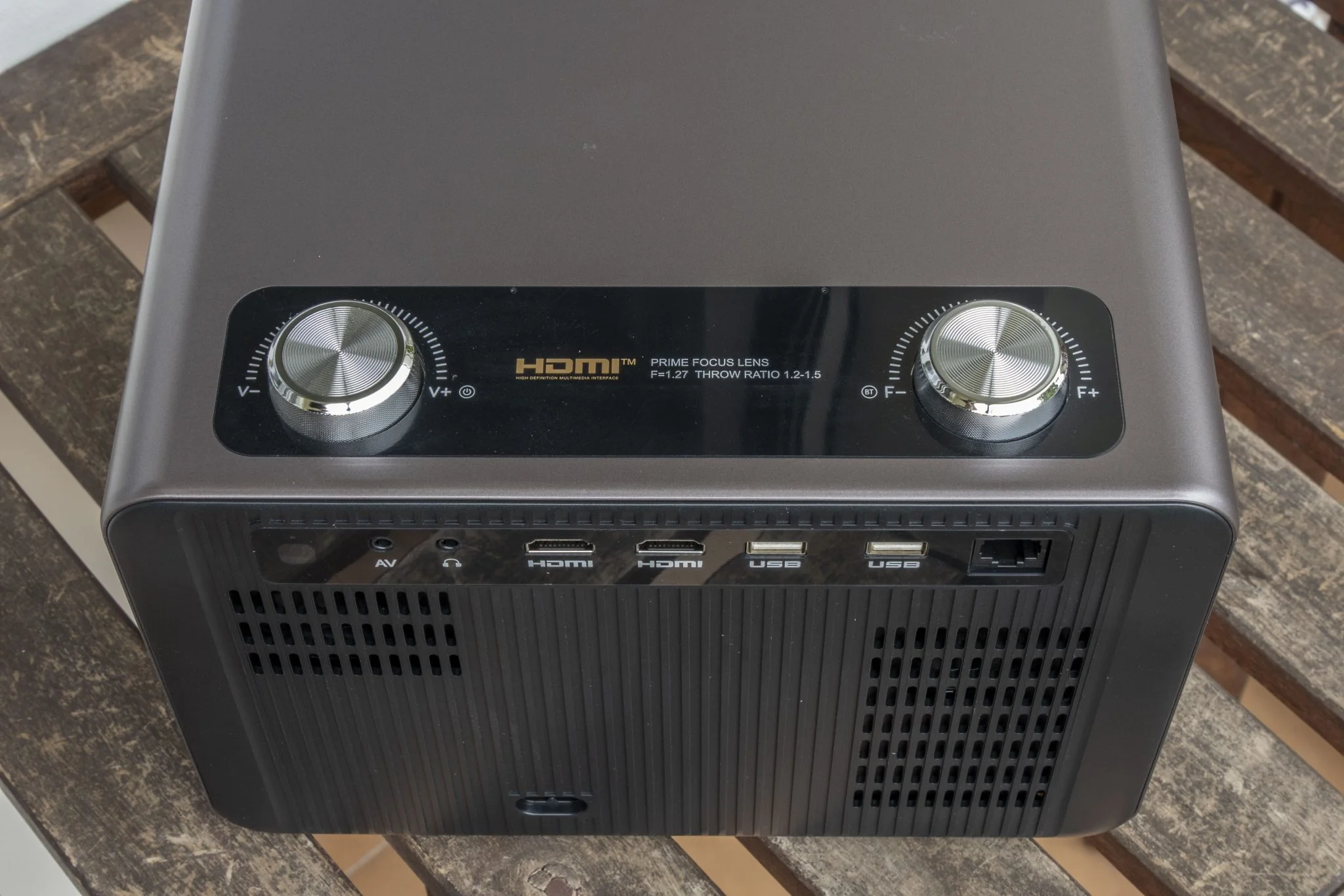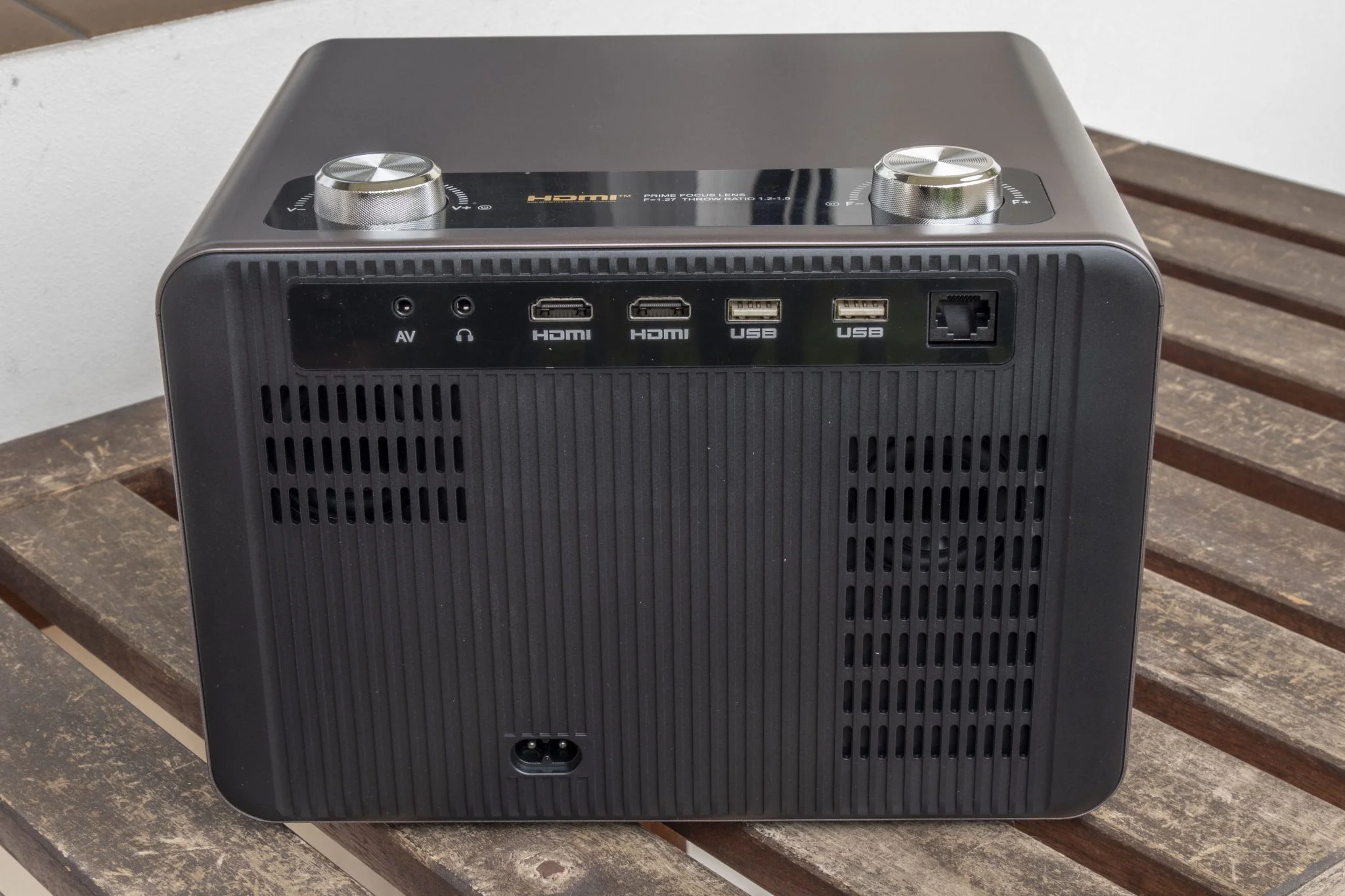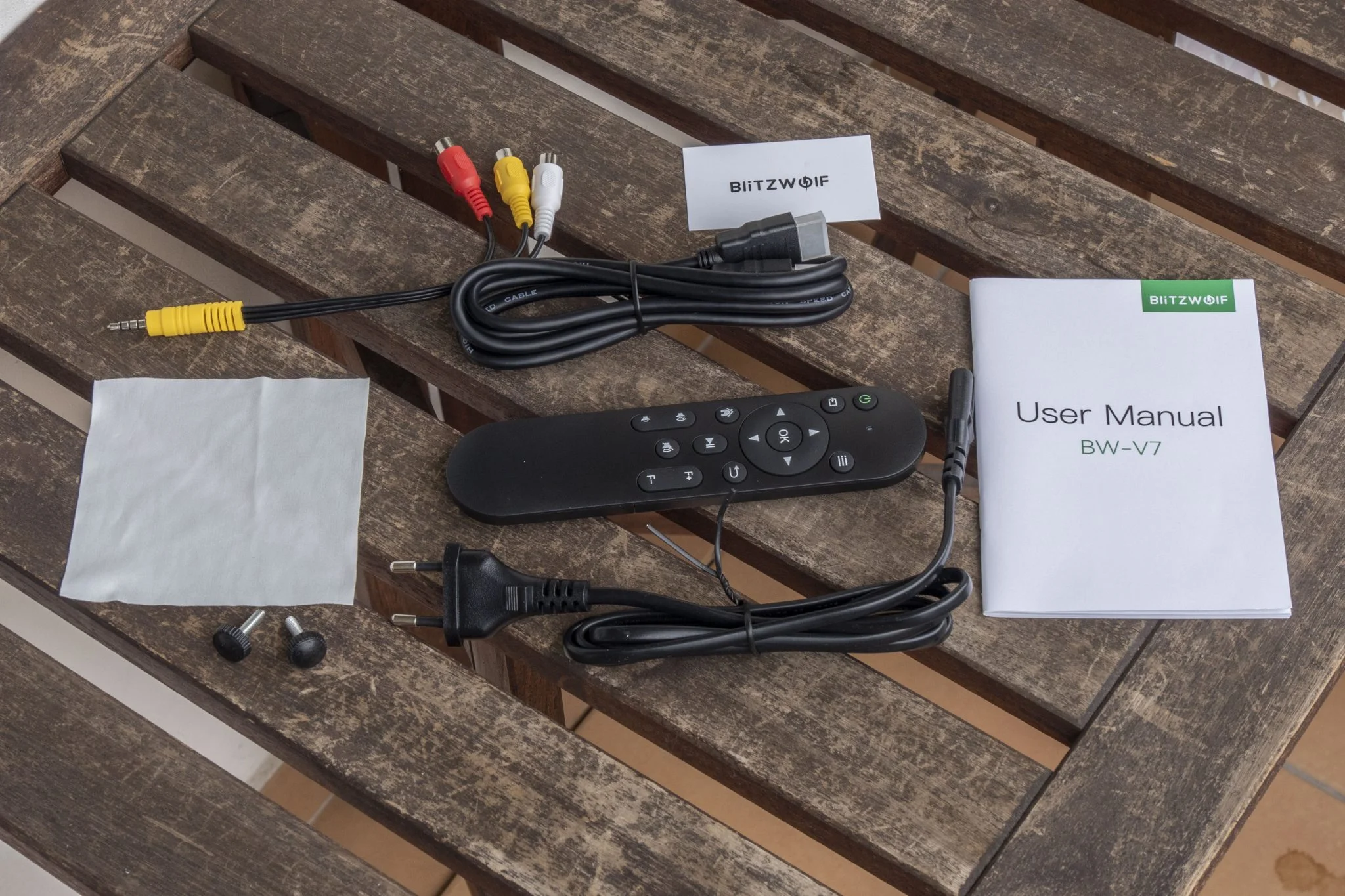 A változatosság kedvéért ehhez a modelljükhöz sem adnak a BlitzWolfnál lencsevédő kupakot, hiszen miért is kéne védeni a projektor legérzékenyebb részét, nem igaz? A hátoldalon vannak a portok, meglehetősen szép számban: