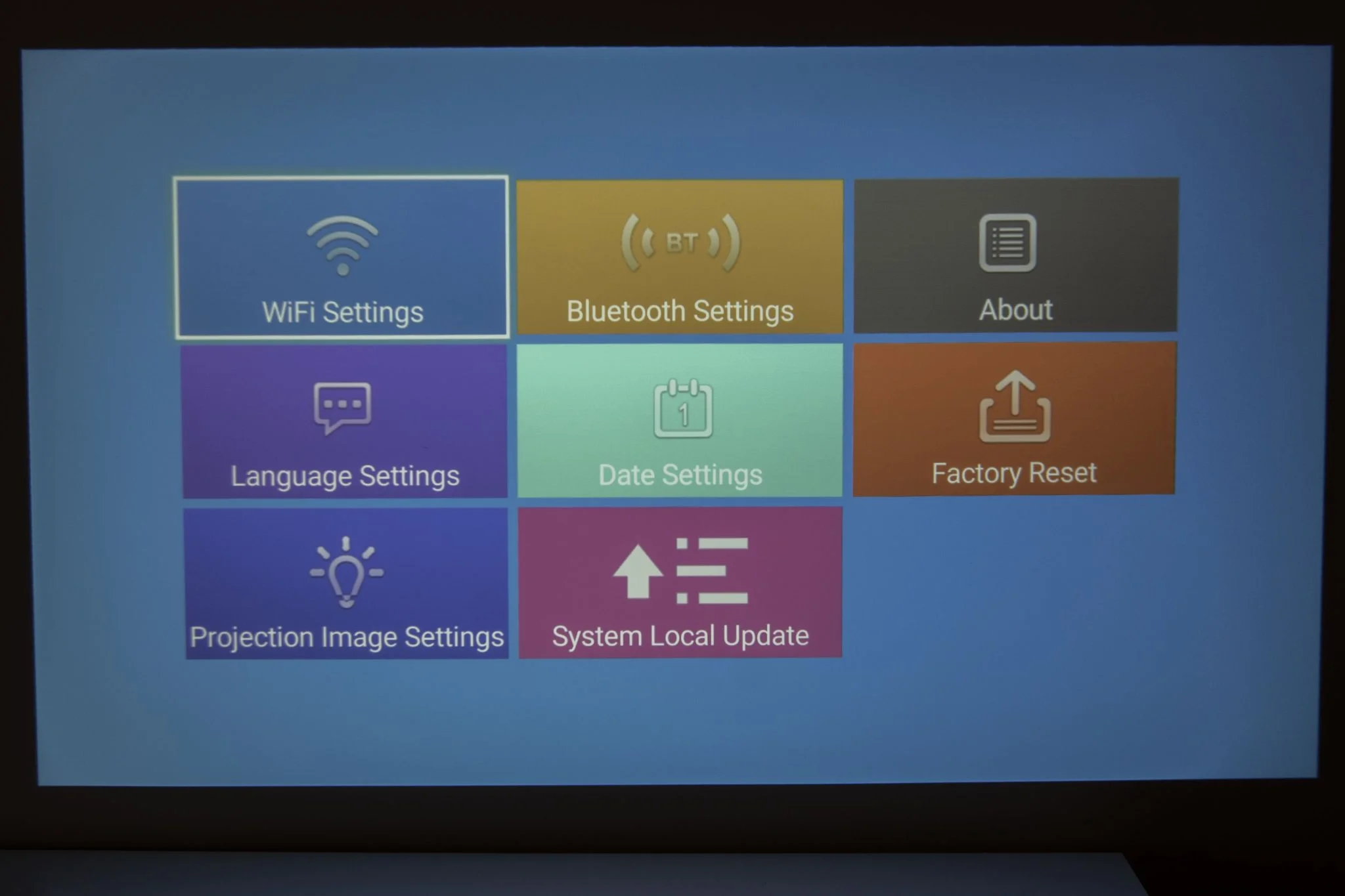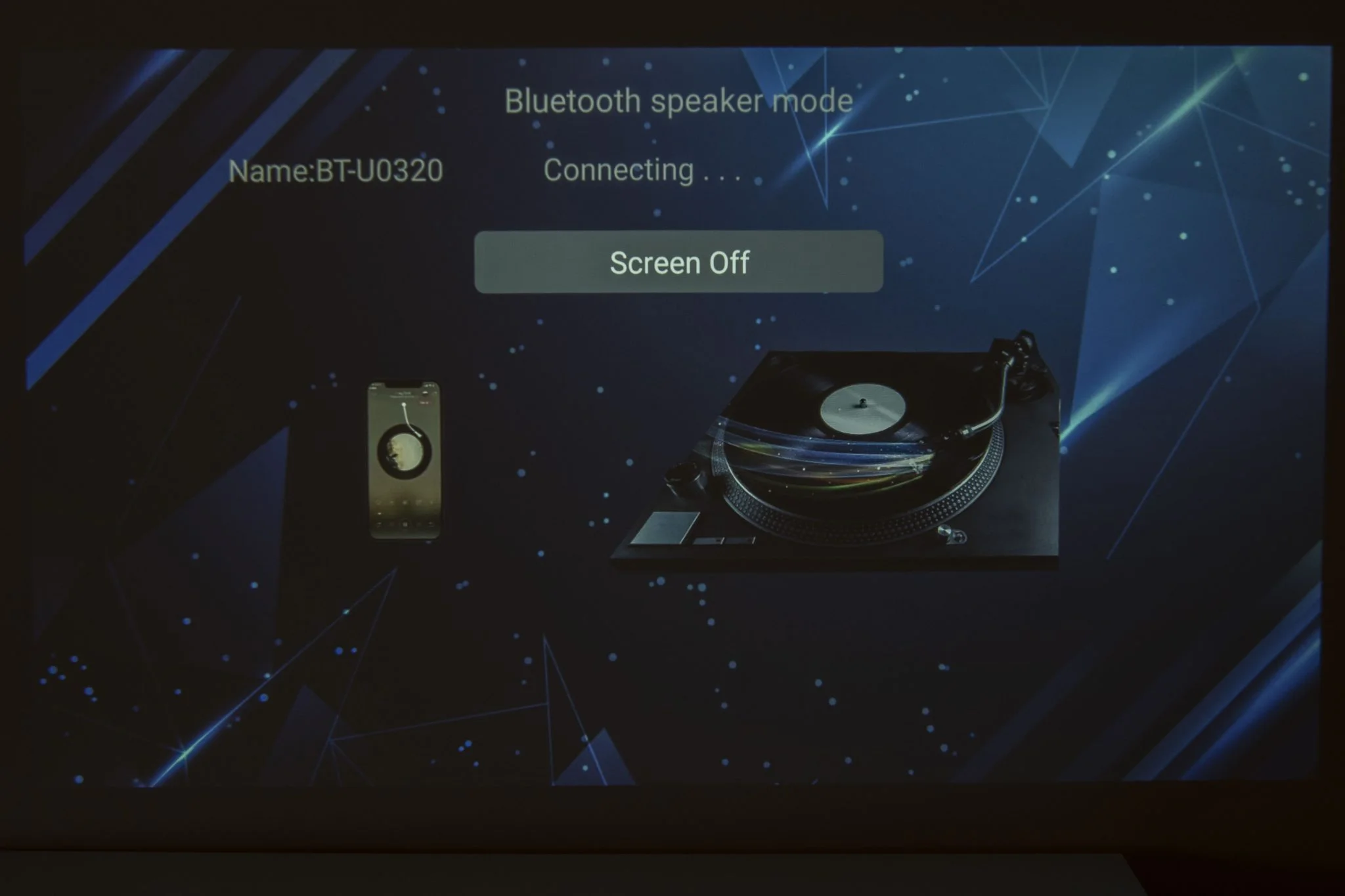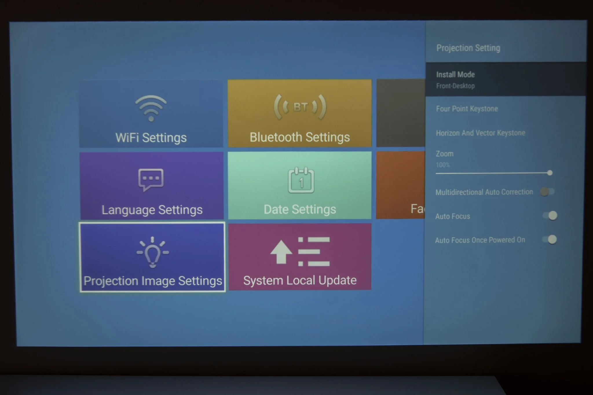 Bekapcsoljátok, az Ultimea Apollo P40 elvégzi, amit el kell és nagyjából ennyi. Azért át lehet verni, például ha a hozzá adott lábnál magasabbra emelitek vagy oldalra megdöntitek, akkor el tudja rontani a korrigálást, de hát ez nem is életszerű helyzet. A menüje szög egyszerű, leginkább a perifériák kezelésére alkalmas, illetve arra jó, hogy valami jó kis hangrendszert hozzácsatlakoztassatok, annak ellenére, hogy a 10 W-os sztereó hangszórók nem szólnak rosszul. Képes BT hangszóróként is működni a projektor, ha az Ultimea Apollo P40-et használnátok hangforrásként.