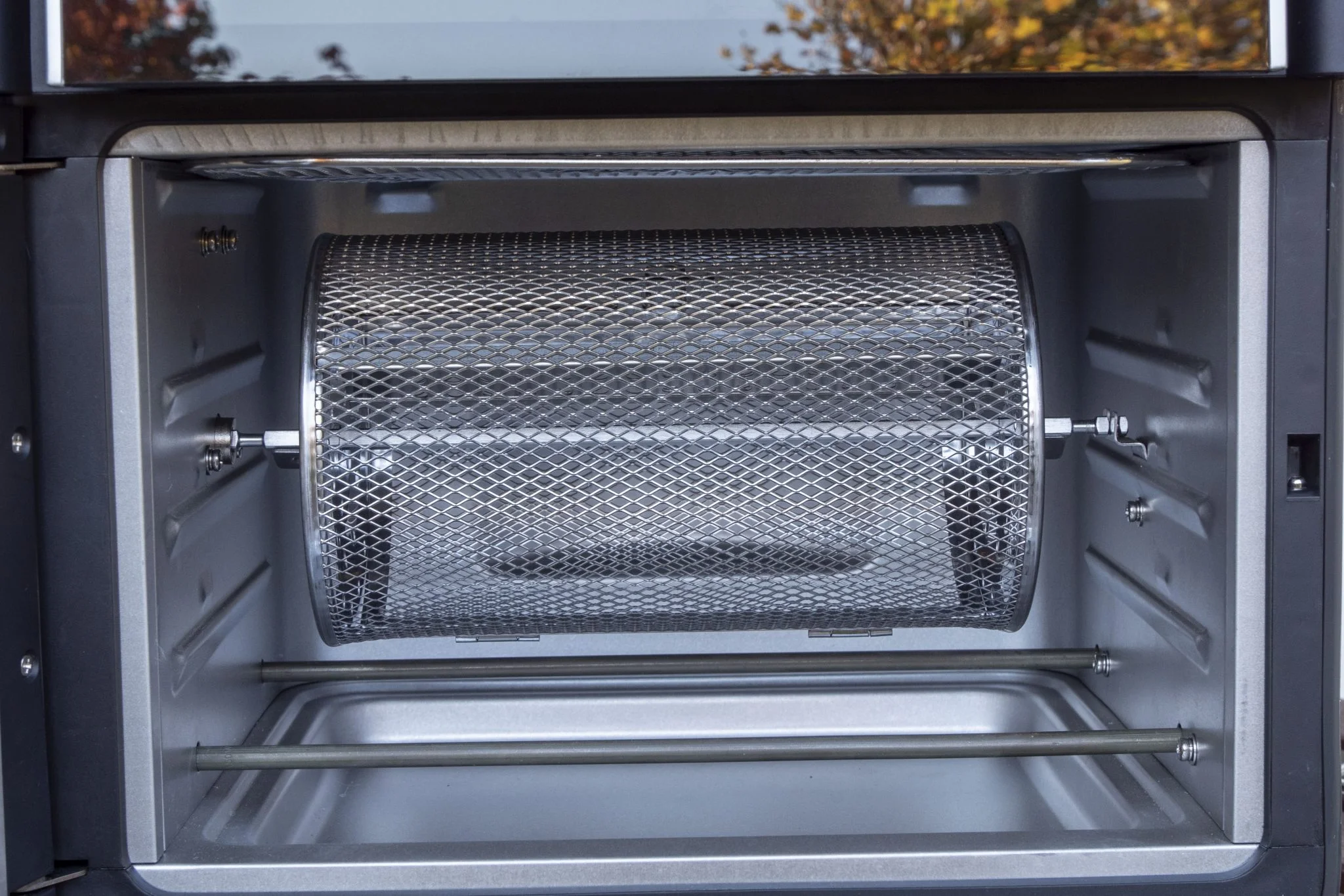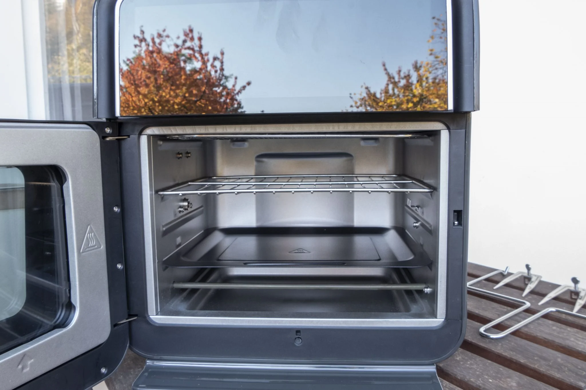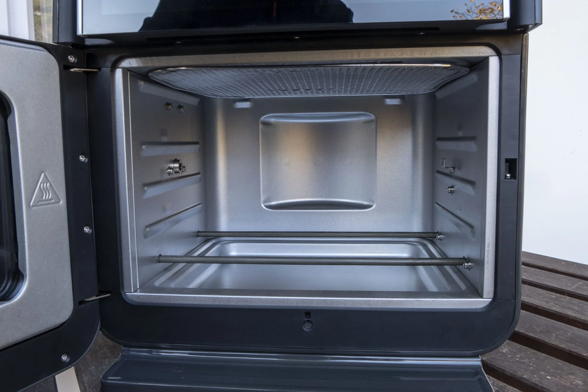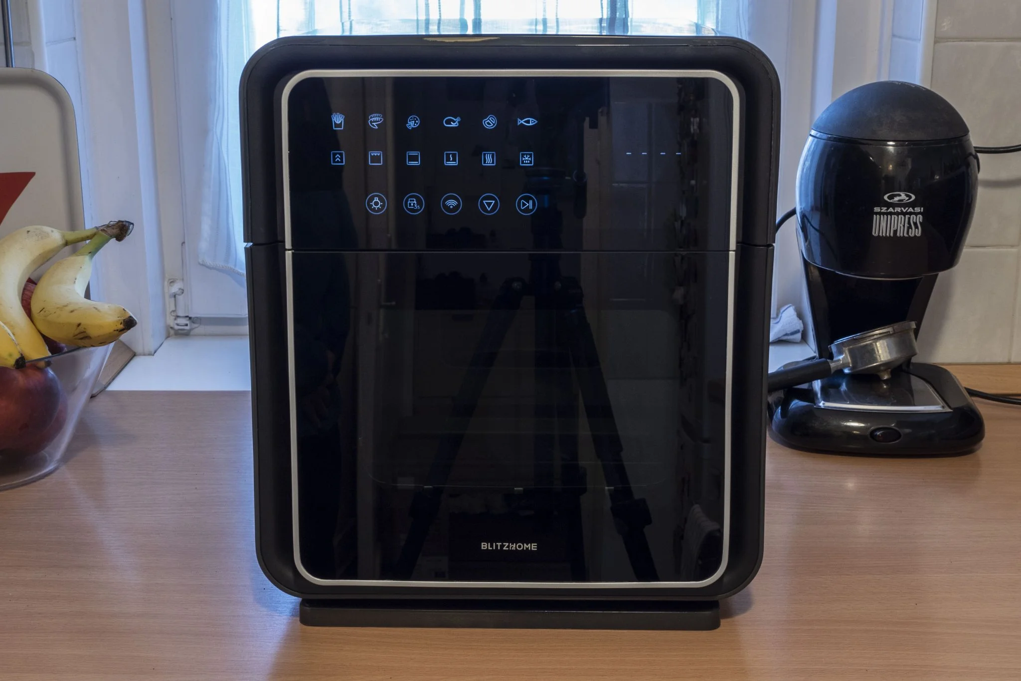 A BlitzHome BH-AO1 furcsa hibridje egy sütőnek és egy fritőznek, és próbálja mindkettő előnyeit egyesíteni. Ez azonban nem igazán sikerül, mert ahhoz nem elég nagy, hogy sütő legyen, ahhoz viszont túl méretes, hogy egy fritőz feladatait lássa el. Ami szintén nem tetszett, az a külsejét borító műanyagok. Iszonyatosan könnyen karcolódik, már pedig egy konyhában mindennaposak az olyan „balesetek”, amik a felületén nyomot hagyhatnak. Ami az előnyére írható, hogy elég sok, jópofa kiegészítővel rendelkezik, például süthettek benne grillcsirkét vagy sült krumplit anélkül, hogy meg kellene fordítanotok az ételt, hiszen ezt a berendezés elvégzi helyettetek. Aztán ott van az app alapú vezérlés, a program kijelzi, mennyi idő van hátra a sütésből, ami szintén a jó pontok közé írható fel.
