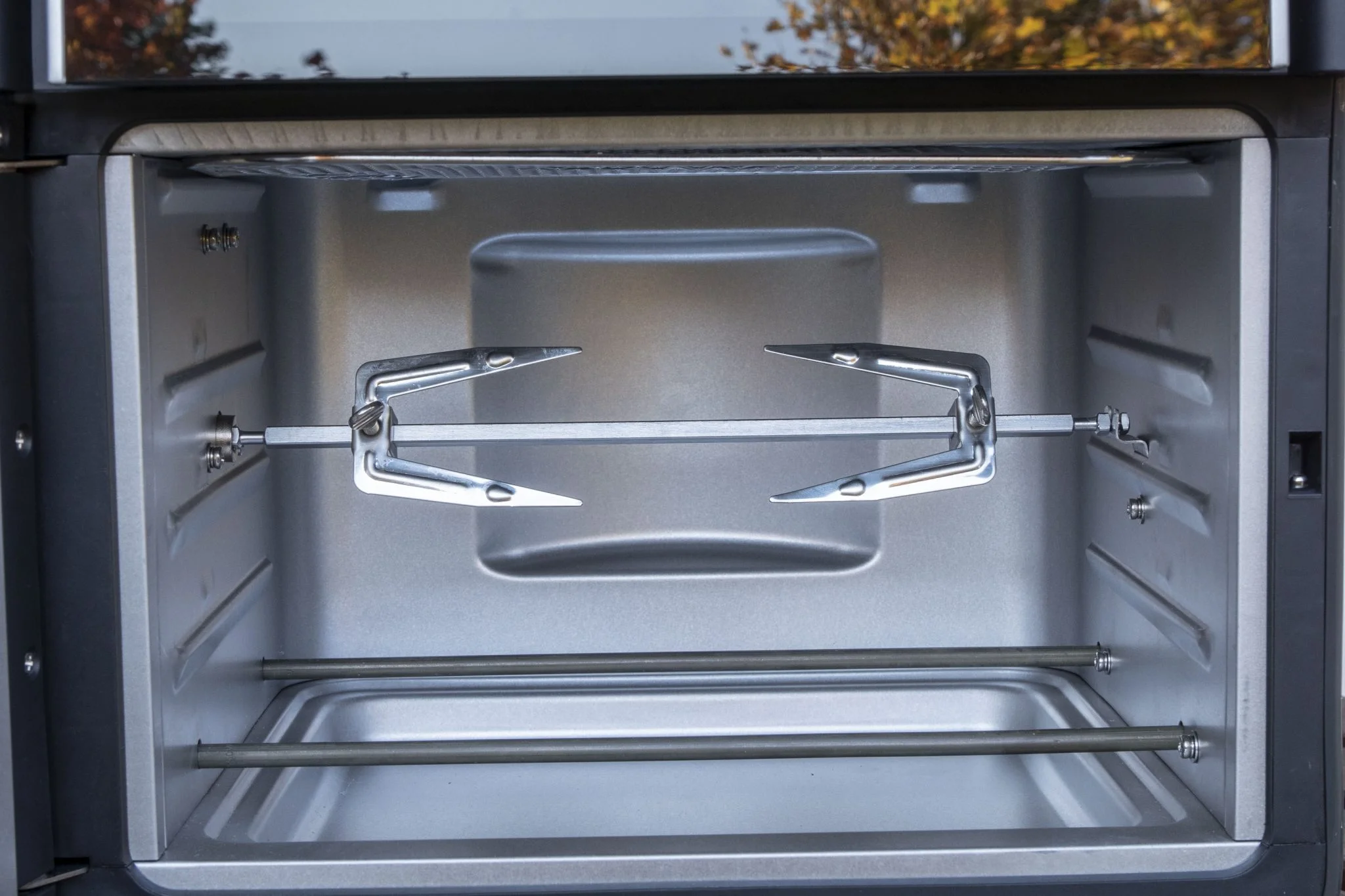 csak sokkal nagyobb mennyiségben lehet velük ételeket előállítani. Itt van a mindjárt a BW-EO1, ami hatalmas, szintén képes grillcsirkét sütni, viszont a fél konyhát elfoglalja, vagyis nagyjából egy hagyományos elektromos sütőt tudtok vele kiváltani.