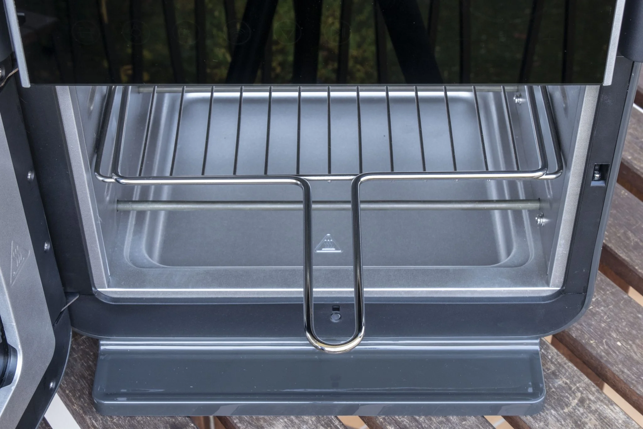 Van továbbá egy acél kiemelővilla is, amit a rácshoz használhattok. A beüzemelés előtt még egy dolog feltűnt, a hátoldalra fel lehet tekerni a kábelt, ami jó ötlet, egyébként is utálom, ha a fölösleges elektromos zsinórok kígyóznak a konyhaasztalon.