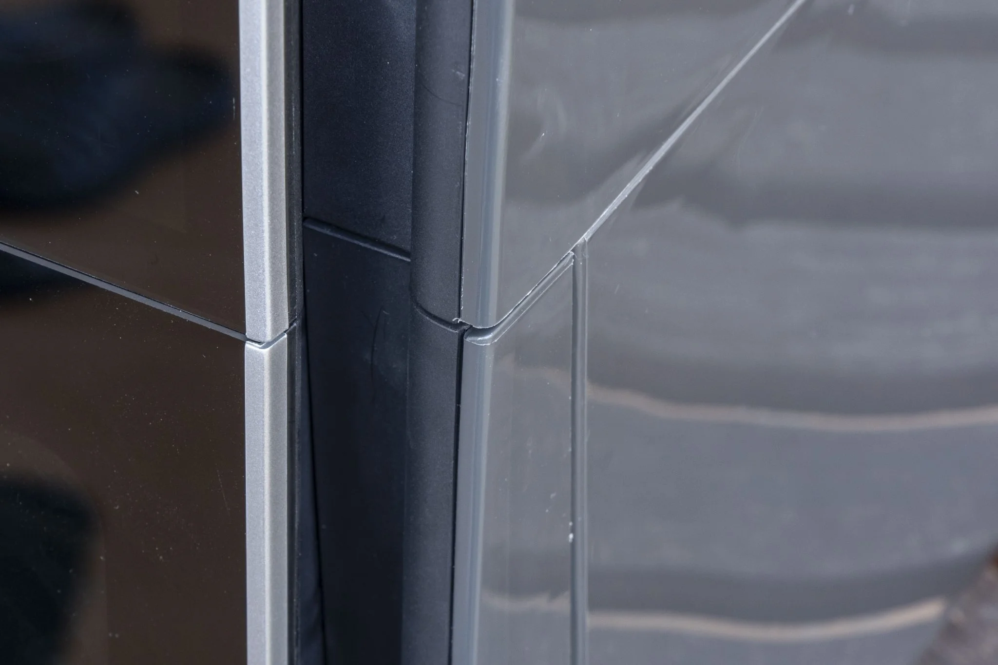 dögös jövőbeli robotnak néz ki, míg oldalra nem fordítjátok. Itt viszont olyan rettenetes illesztések tárulnak fel, hogy ilyet egy fele ennyibe kerülő eszközön sem szívesen látnék. Aztán a tetején és az oldalán az anyaghasználat, jaj. A teljes vegyipari folyamatot meg lehet tanulni a kőolaj szénláncok szétválasztásáról, annyi a műanyag, pedig ott, ahol sütni szoktak, a rozsdamentes acél – leánykori nevén inox – a nyerő.