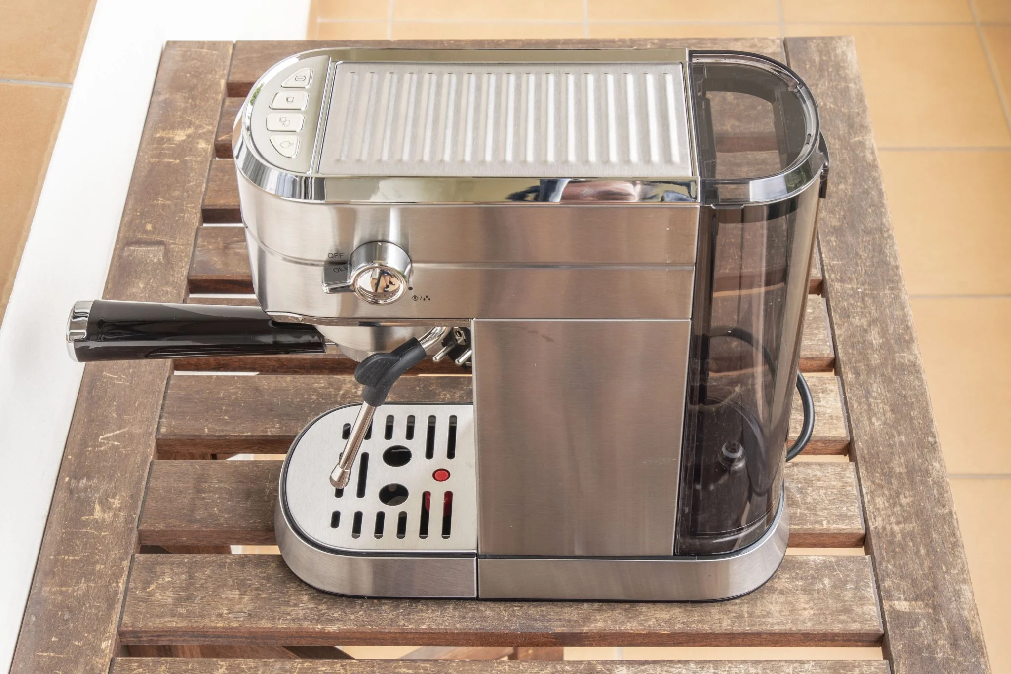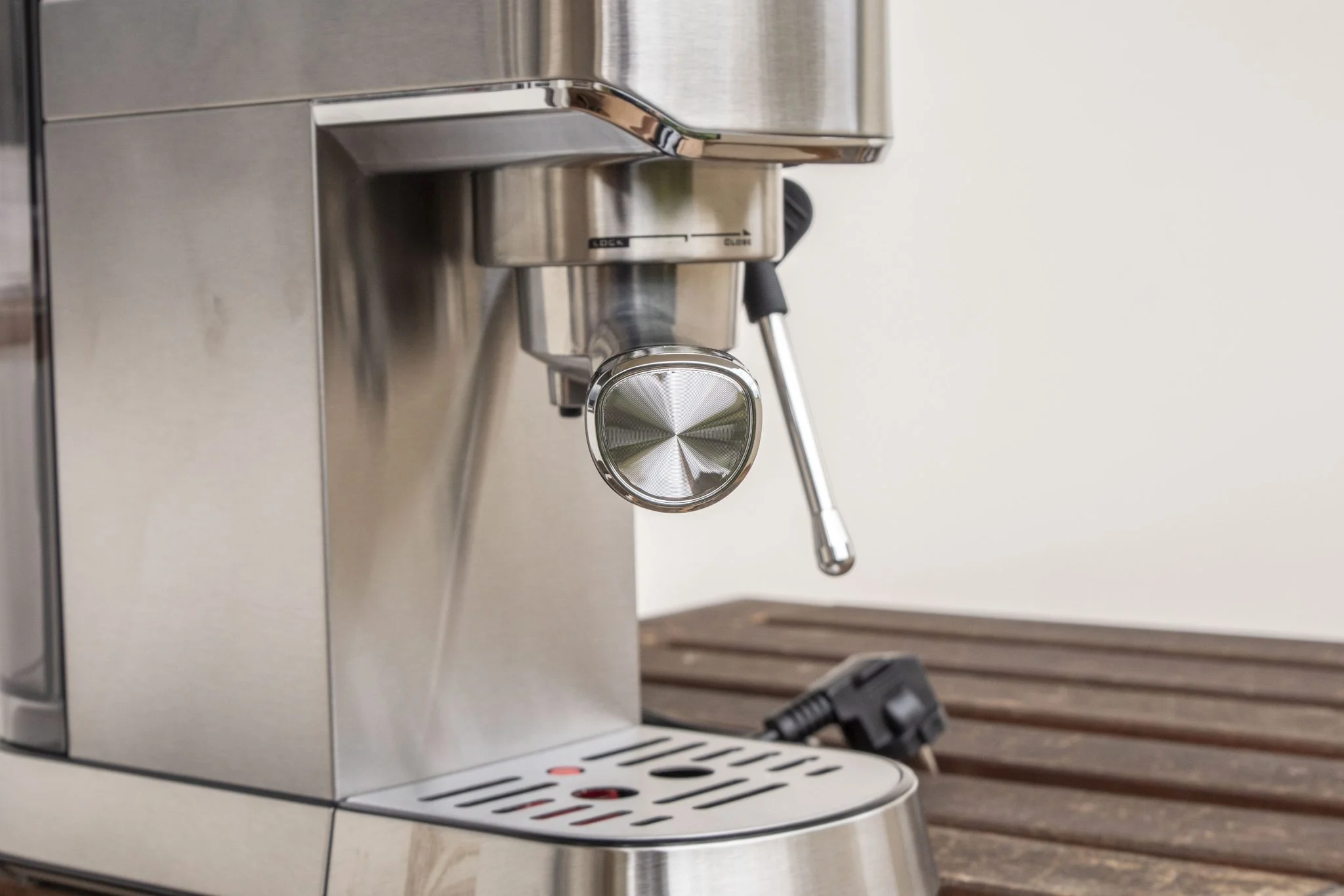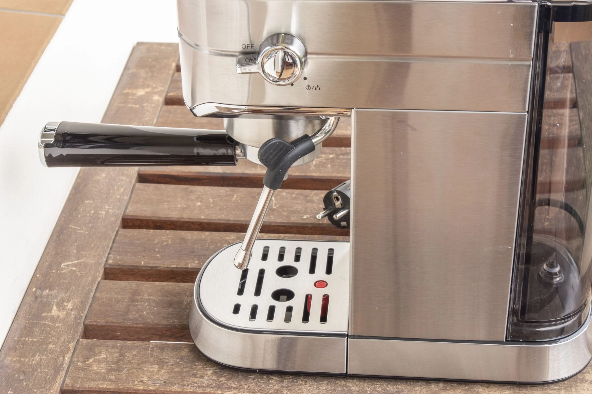 Először azt hittem, mindenhol rozsdamentes acél a burkolat, de nem, a gombok és a gőzszabályzó tekerője műanyag, csak olyan szépen eldolgozták, hogy míg meg nem fogtam, nem tűnt fel. Ebből következik, hogy az anyagminőség rendben van, és a dizájn is tetszik.