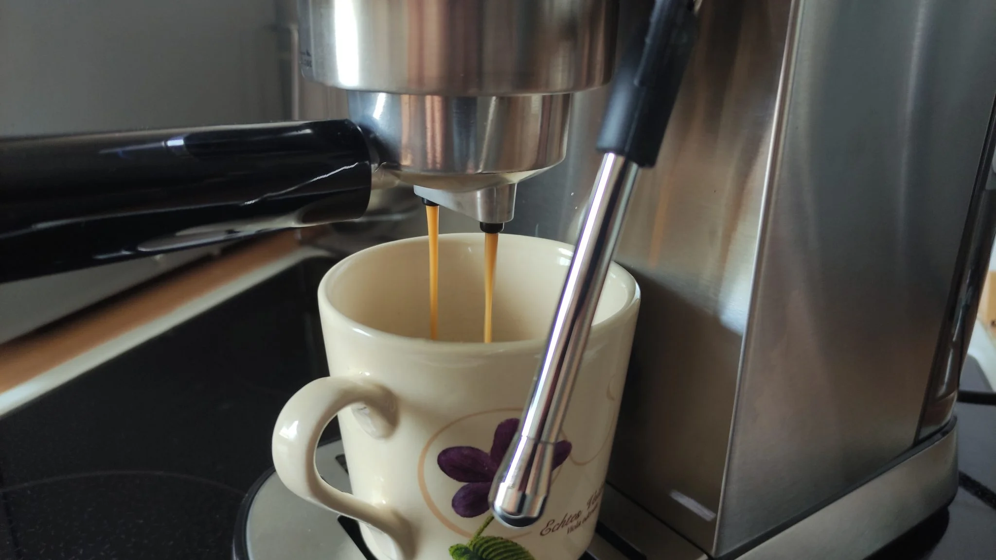 Hogyan készíti a CM1503 a kávét? Úgy, hogy felmelegíti a vizet, majd egy szivattyú segítségével, 15 bar nyomáson átpréseli a forró folyadékot – valahol 90 és 95 között a Baristatraining szerint – a kávépogácsán, és kész is a kávé. Érdemes hagyni, hogy lecsöpögjön a nedű, egyrészt, mert nem kell kapkodni a pogácsa kávéadagolóból kiütésével, másrészt meg ne pazaroljátok a jó kávét. A vezérlés egyszerű, van a tetején 4 gomb, ki- és bekapcs, 1 vagy 2 kávé, meg a gőzölés és ennyi, a vezérlés értelemszerű. Ha villog alattuk a LED-es háttérvilágítás, akkor vagy túl meleg a víz – pl. mert korábban gőzöltetek – vagy az alap mennyiségét állítjátok be a kávénak éppen, tudtotokon kívül. Egy kávé 25-60, míg a dupla 70-110 mm között lehet, szabályozni hosszú nyomás, rövid nyomás, folyatás, hosszú nyomás kombinációval lehet, de ez élőben sokkal egyértelműbb lesz.