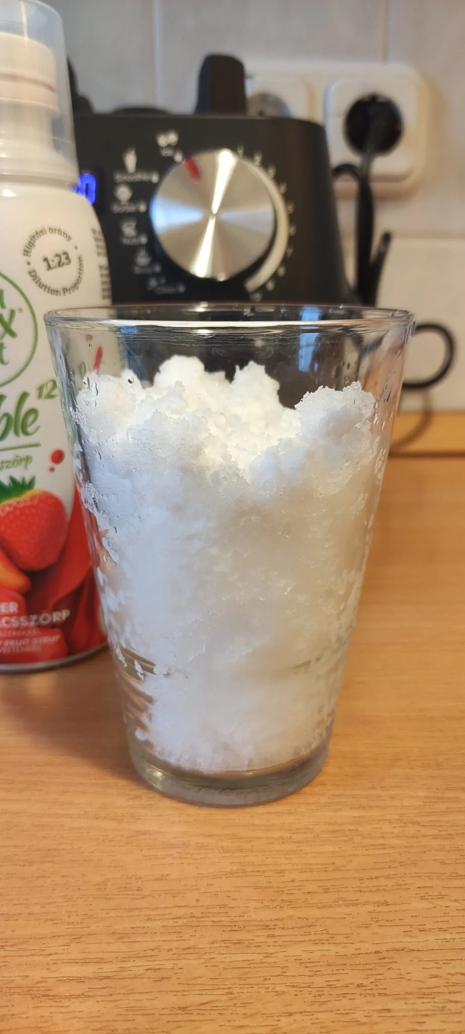 A szilikon fedő kitágult és a kupak melletti lyukakon a nagy teljesítmény kicsapta az anyagot, szóval tényleg ne tegyetek ilyet. A dolog ellentéte a jégdarálás, ami szerencsére nem jár ilyen korlátozásokkal. Még egy dolgot megemlítenék, ez pedig a bal oldali funkciók utolsója, az öntisztítás. Elvileg ehhez 1 liternyi langyos víz és 1-2 csepp zsíroldó szükséges, és ez elmossa a kancsót. Gyakorlatilag egész jó a hatása, de azért nem tökéletes, pl. maradhatnak ételmaradékok a szilikonfedő réseiben, szóval tulajdonképpen azért csak muszáj kipucolni a részegységet.