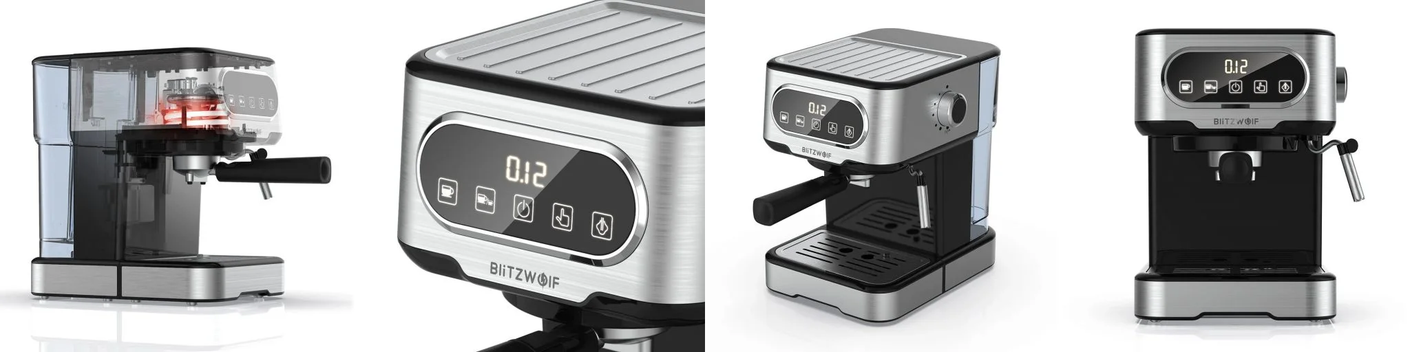 – ezeket hívják automatának is -, ez biztosítja, hogy rendelkezésre álljon a megfelelő nyomás. A Gorenje szerint ez 15 bar, a BlitzWolf szerint pedig 20, de ennek egy amatőr szemében szerintem nem lesz jelentősége. Ugyanez igaz a súlyra is, a 3,65 kilogrammból lehet arra következtetni, hogy itt nem rézbojleres megoldással dolgoznak, mint a komolyabb berendezések, hanem csak valami kompakt termoblokkal, nyilván csak ez fért bele az alacsonyabb árba. Ez szintén nem érdekli az átlagos, laikus kávéfogyasztót, de a komolyabb márkák – Lelit, Gaggia és hasonlók – odafigyelnek az ilyen „apróságokra” is.