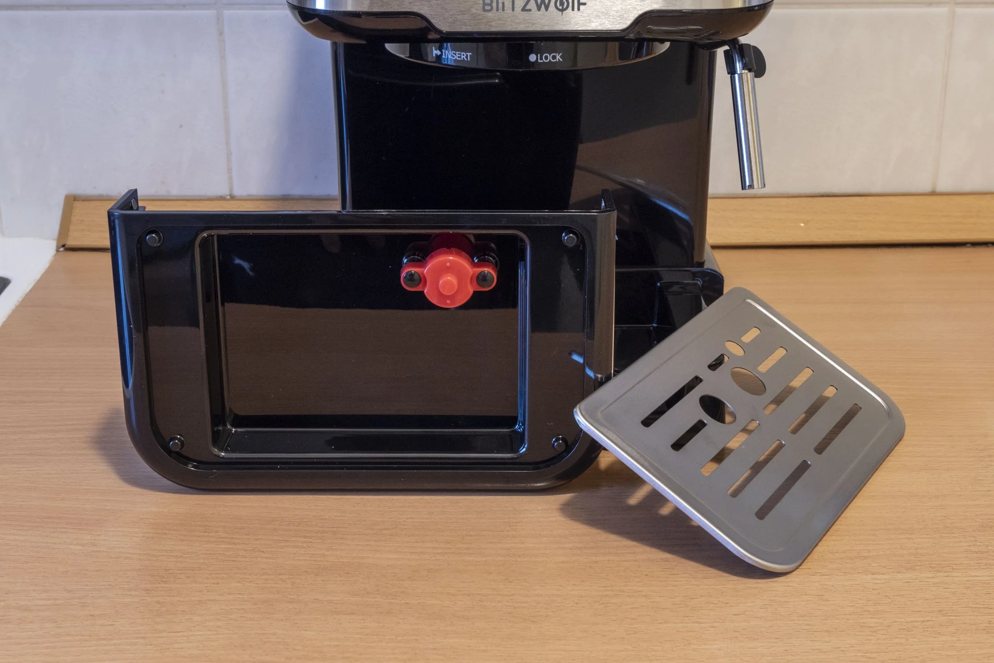 A konyhai kisgép nagyon pofás, ahová legtöbbször nyúltok, ott rozsdamentes acél felületekkel találkozhattok, vagyis a csöpögtető tálcánál, a gőzszabályzó tekerőgombjánál, de pl. a kar is kellemes minőségű. Kedvencem a tetején található pohártartó fémtálca, ami nagyon esztétikus, már-már kávéházi hangulatot kölcsönöz a gépnek. Ellenben a víztartály elég gagyi műanyag, a kinyitható és hátra lehajtható műanyagfedél elég hitvány, többször sikerült is kihúznom a tartójából. Az viszont szerencsés, hogy nem kell leemelni a hátoldalon lévő folyadéktárolót, hanem felülről fel tudjátok tölteni kb. 1 liter vízzel, ami meglehetősen sok adag kávé elkészítésére elegendő.