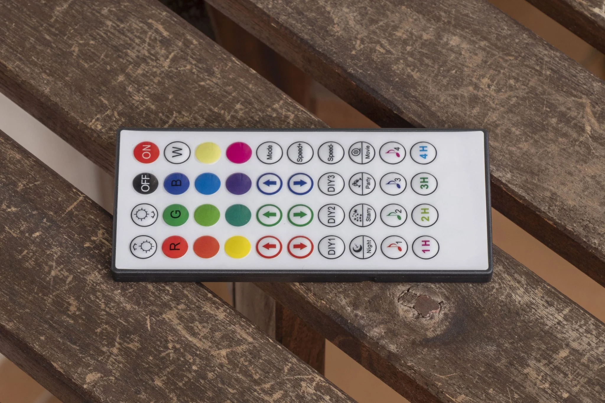 Előbbin, most kapaszkodjatok meg, 40 különböző gomb van, ennek ellenére mégsem bonyolult kiismerni, mert viszonylag logikus csoportokba rendezték el a funkciókat. Az alap dolgokat, mint a fényerőállítás külön piktogramok jelölik, a színek pedig, értelemszerűen a színek. Ezeket lehet mindenféle módon variálni a különböző lüktető, villogó, futó effektekkel. Természetesen időzíteni is lehet a lámpát, illetve változtatni a viselkedés sebességét, sőt, egyedi színeket is fel lehet venni, ezeket a 3 darab DIY gombról lehet előhívni. A távnak egyetlen limitációja van: hogy nem lehet a tizenhatmillió színárnyalat között fokozatmentesen léptetni, ami érthető, ennyit úgysem lát az emberi szem. Az appból viszont egy gyűrűn keresztül ez is állítgatható az ujjatok húzásával, szóval már csak ezért is megéri leszedni a Smart Life applikációt.
