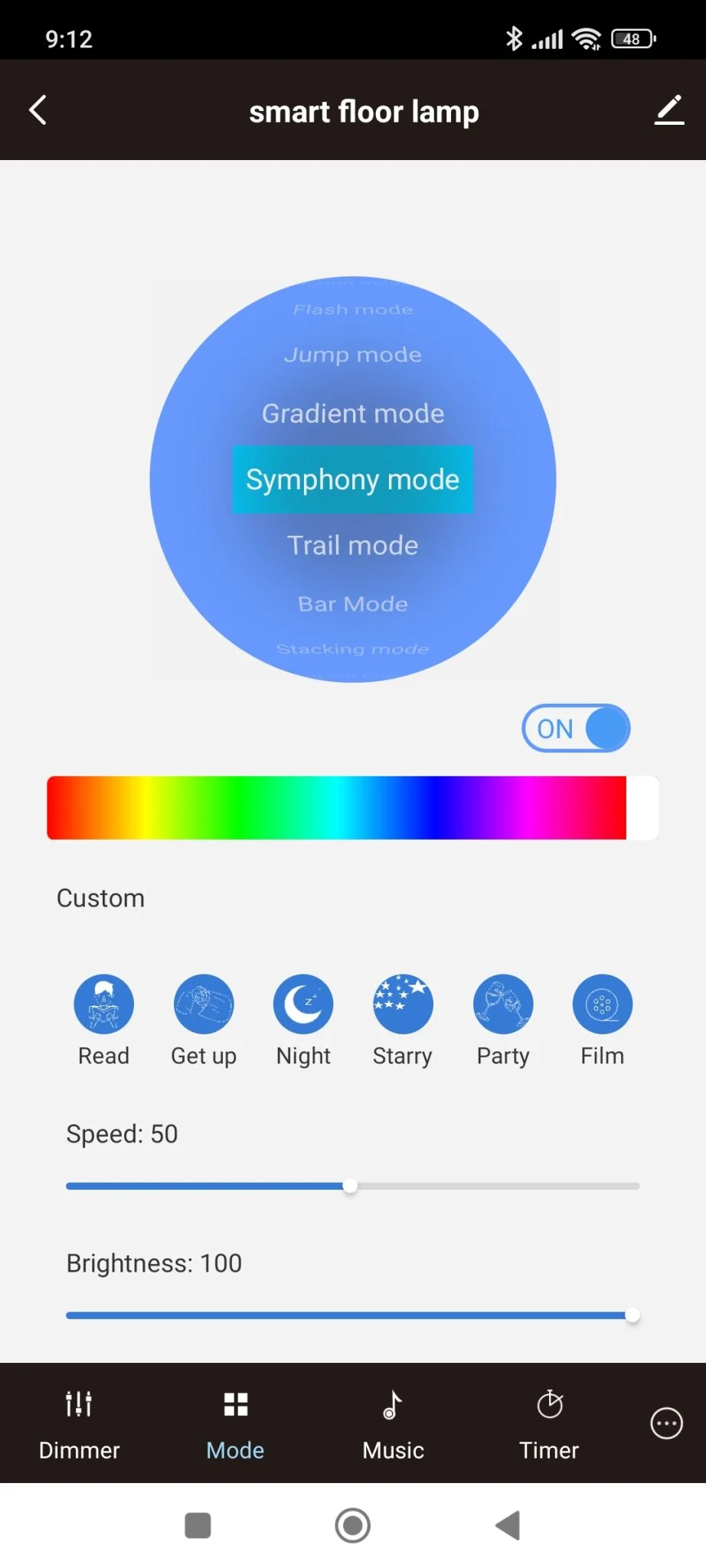 aminek a sebességét a fényerejét is átállíthatjátok, sőt, például a gradiens effektbe belekeverhettek újabb színeket is. Ez gyakorlatilag végtelen lehetőséget biztosít az önmegvalósításhoz. Természetesen nem kell ennyire elmélyedni a dolgokban, lehet csak simán egy színnel használni, és beállítani a már említett digitális „forgótárcsa” segítségével. A legviccesebb rész viszont a zenefelismerés, ami 5 különböző profilt jelent, és a tápegységbe rejtett mikrofon segítségével megpróbálja lekövetni a muzsika ütemét. Úgy vettem észre, hogy a mélyekre érzékenyebb, ezért ha nagyon ványadék hanggal – például telefonról lejátszott zenével – próbáljátok a funkciót, akkor sokkal rosszabb hatást lehet elérni, mint egy normális hangrendszerrel. A legélethűbb profil a diszkó, ilyenkor egész jól és dinamikusan követi a zenét, tényleg tud szórakoztató lenni a kibocsájtott fényár. Innen is elérhető az időzítés, ami sokkal értelmesebben beállítható, mint a távirányítóról, javaslom innen a használatát a praktikum miatt.