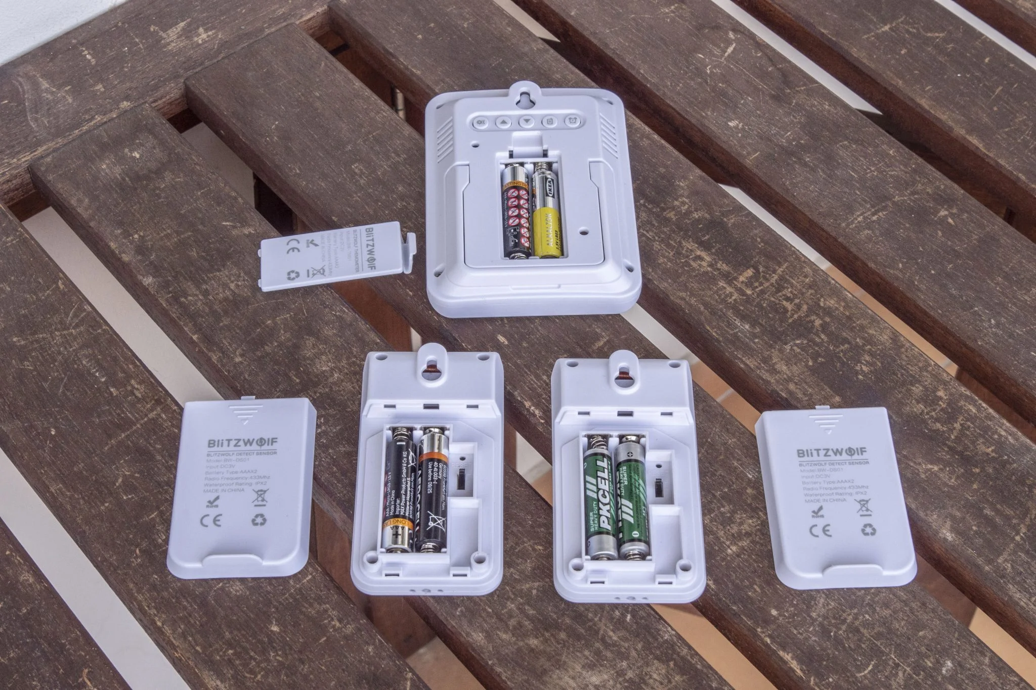 A központi egység és minden további szenzor is 2-2 AAA elemmel működik, ami 3 db szenzor esetében már 8 AAA elemet jelent,