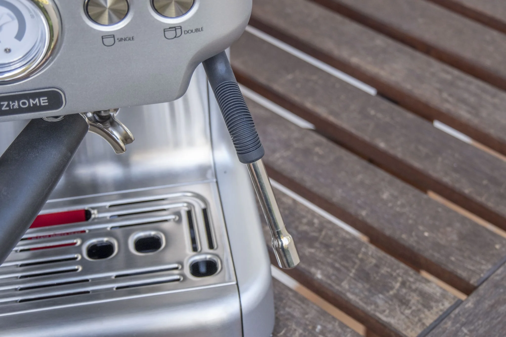 de a gép leírása szerint a kávészemcsék nagysága és a tömörítés – amit ti végeztek el az ún. tamperrel – mindenképpen, és a tapasztalataim is ezt mutatják, így nagyjából 22 adag kávét kellett lefőznöm, mire eltaláltam a nekem tetszőt. Ez nagyon tudományossá teszi az egészet, biztos van akinek be fog jönni, viszont miután én eltaláltam az ideális tartományt, többet nem variáltam, jól van az úgy. A komolyabb kávéfőzőkön van egy túlnyomáskiegyenlítő szelep, ami meggátolja, hogy a kávé a szűrőre égjen. Ezt konkrétan a CMM5 leírása nem említi, de mivel a cappucino készítéshez tejet kell gőzölni, a felesleges gőzt pedig a BlitzWolf terméke is kiengedi a folyamat végén, ezért arra tippelek, hogy ez a szerkezet itt is beépítésre került.