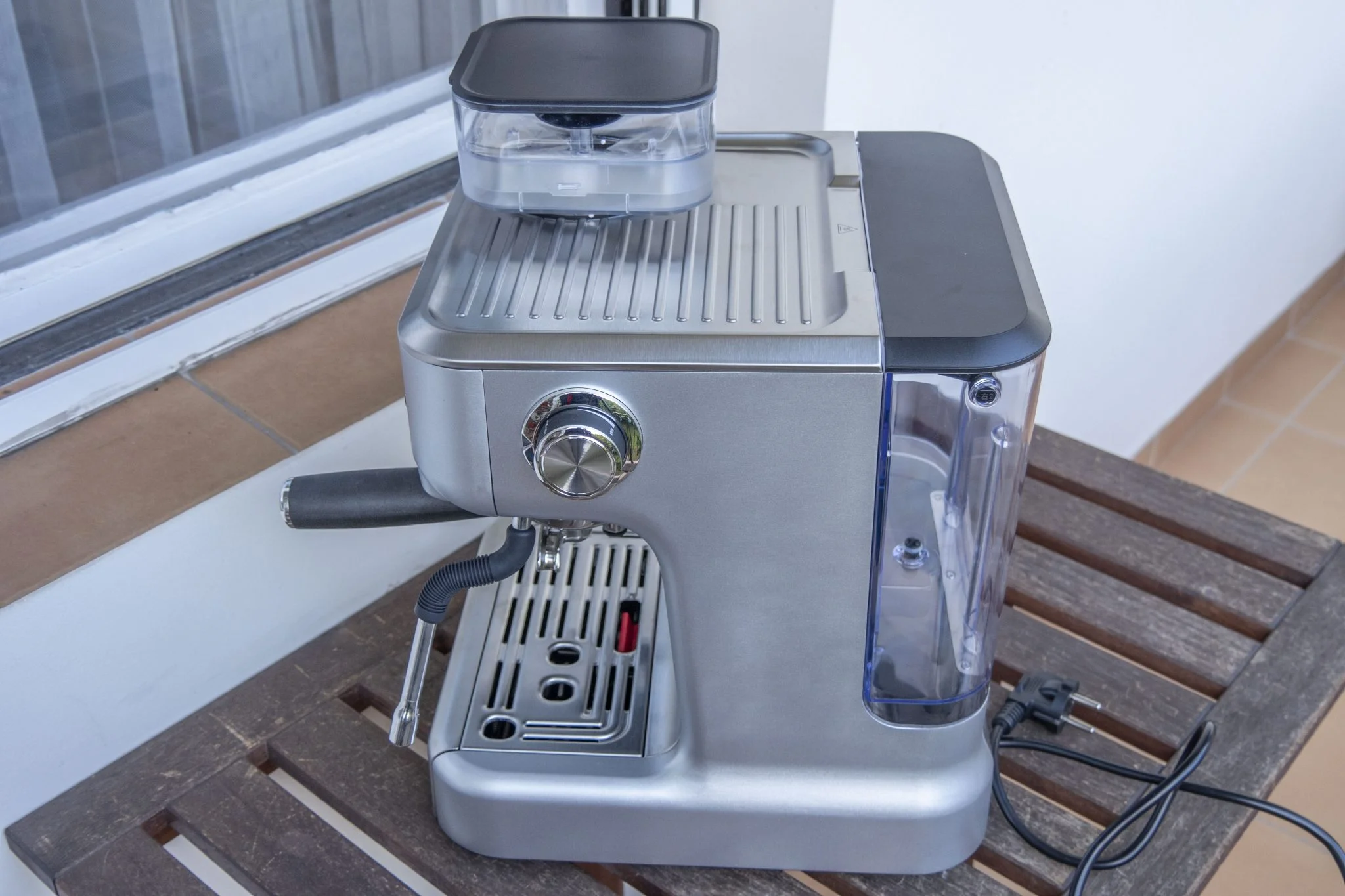 Én gyakorlatilag soha nem töltöttem bele a tartó kétharmadánál kevesebb kávét, ekkor ugyanis megáll a pogácsa tetején a víz. Ez még akkor is előfordulhat, ha nem elég sűrű a tömörítés. Ilyenkor kiskanállal kell kikaparni a masszát a kávétartóból, ami egy eléggé utálatos munka, szóval nektek sem javaslom. Sokszor a maximum jelölésig töltöttem fel, akár kétszer is tömörítettem, így lehet a legjobb hatást elérni, és ilyenkor a nyomás is a megfelelő tartományban marad. Az viszont látható, hogy a darálás, a tömörítés, a gőzölés és az egyéb elemek jóval bonyolultabbá teszik a kávékészítést, mint egy átlagos kávéfőző esetében, és néha azt éreztem, hogy nem a gép kevés, hanem az én tudásom nem elégséges a folyamat megfelelő elvégzéséhez.