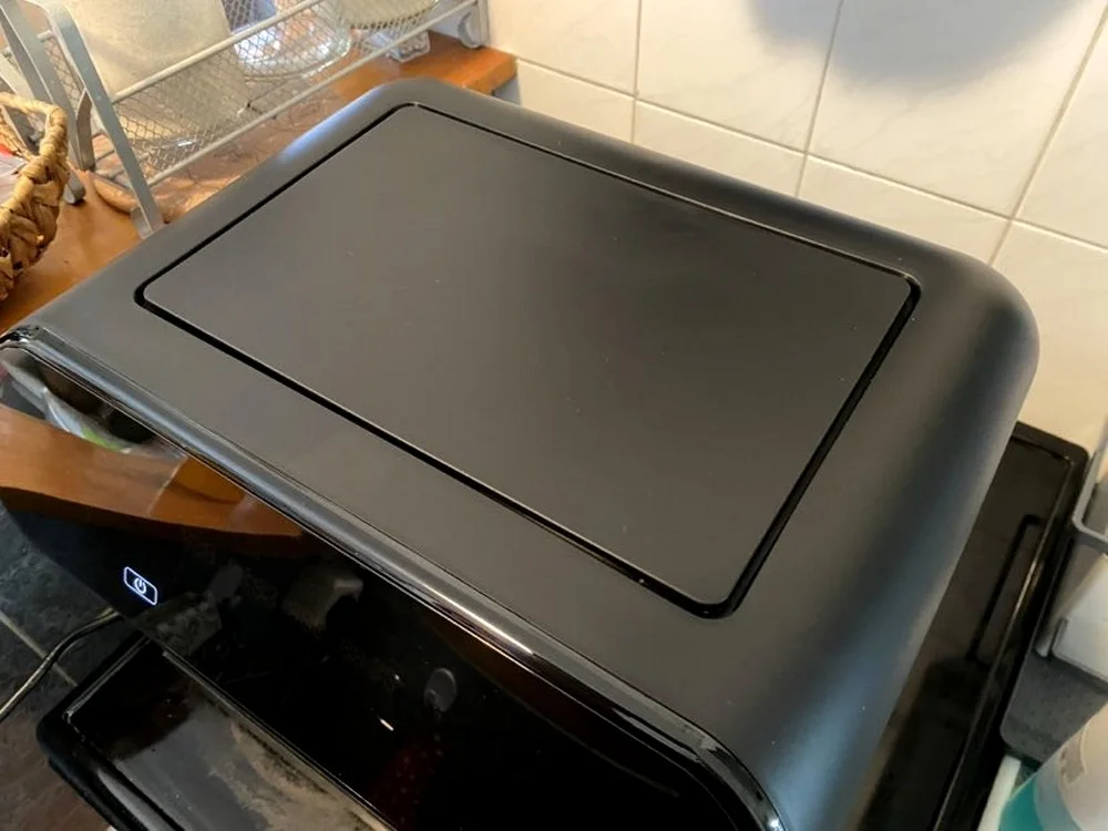 A Chefree AFW20 kicsomagolása után meglepetten tapasztaltam, hogy egy nagyon szép és stílusos konyhai kisgéphez van szerencsém, ami nem is olyan kicsi, mert 31,5x38x30,5 centiméteres, viszont az Ultenic K20-nál valamivel kisebb. Az anyaghasználat kiemelkedően jó, abszolút nem olyan gagyi, mint a Chefree AFW01 esetében, pedig tartottam tőle, hogy itt is hullámos lesz egy-két műanyag rész.