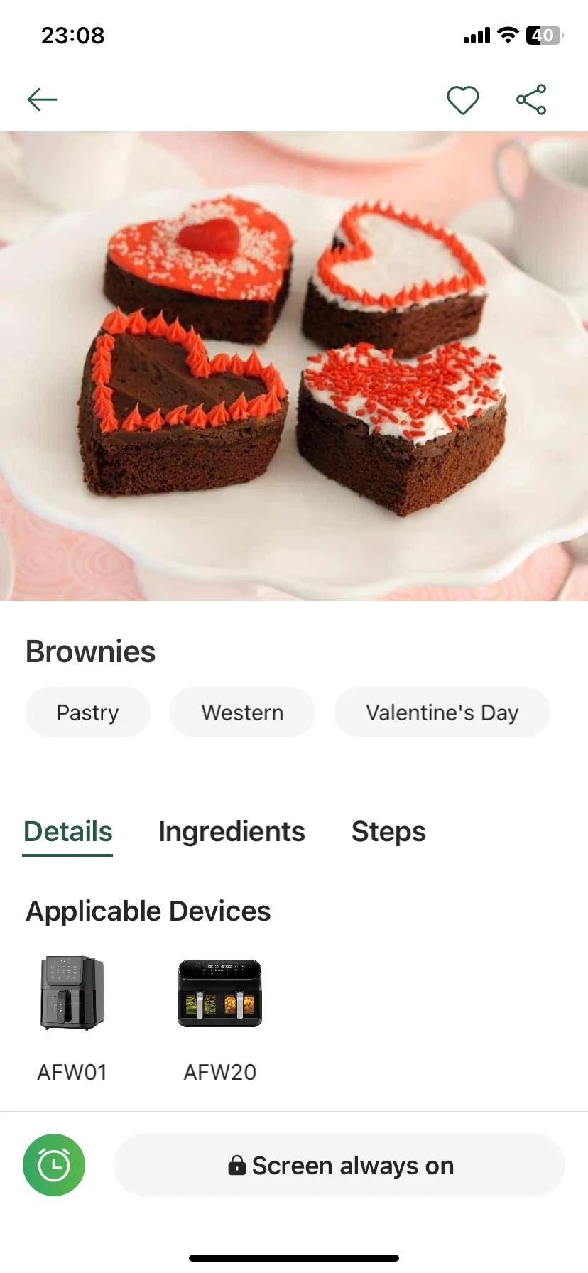Másik személyes kedvencemet direkt a végére hagytam, ami a „bake” üzemmód volt. Kenyérhez, tortához, aprósüteményhez és állítólag minden ilyesmihez jó, ami szem-szájnak ingere. A muffin gondolatát gyorsan elvetettem, mert nincs az a papírforma, ami önállóan megtartja a tésztamasszát. Szilikonra lenne szükség vagy a kosárba illeszthető formára, de ezek nem elvárhatók a gép mellé. A Chefree applikációt érdemes letölteni, mert az AFW20 kiválasztásával 113 „kompatibilis” receptet dobott fel. Egyik sincs túlbonyolítva, bár a sült, fokhagymás brokkolin nem igazán van mit ragozni. Üsse kő, csináltam egy browniet, a receptet simán csak „Brownies” elnevezéssel találod az alkalmazásban. A leírás szerint 165 °C fokon 15-20 percig kell sütni, 17-tel kezdtük, majd visszanyomtam még 7-et és megszületett a képen látható csoda. Amennyire nem lett szép (bénán borítottam ki, na), annyira volt finom, bár, ha az alap „bake” programmal indítom el, ami 10 fokkal több és 20 perc, akkor lehet elsőre tökéletes lett volna.