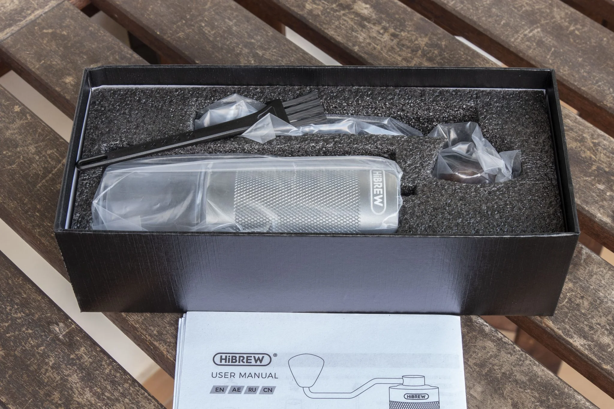 Még egy dolgot érdemes tudni, hogy a jobb termelők minőségi kávéi vákuumcsomagolt zacskóban adják át a kávét a fogyasztónak, ezt onnan lehet tudni, hogy van rajta egy kis szelep, amit megnyomva ki lehet engedni a levegőt kinyitás, majd a visszazárás után is a tasakból, így megőrizve a kávé minőségét, legalábbis ideig-óráig. Ezért jók a hermetikusan záró, nagy tartállyal rendelkező elektromos darálók, vagyis a nevesebb gyártók komolyabb modelljei. Azonban az ilyen szerkezetek 50 000 Ft körül kezdődnek – pl. Graef CM 702 -, míg a kéziket már 15 000 Ft körül meg lehet kapni – pl. Hario Mini – , nagyjából ebben a ligában játszik a Hibrew G4 is. Most pedig a rövid alapozó után elmondom, milyen is a kínaiak kávékészítő alkalmatossága.